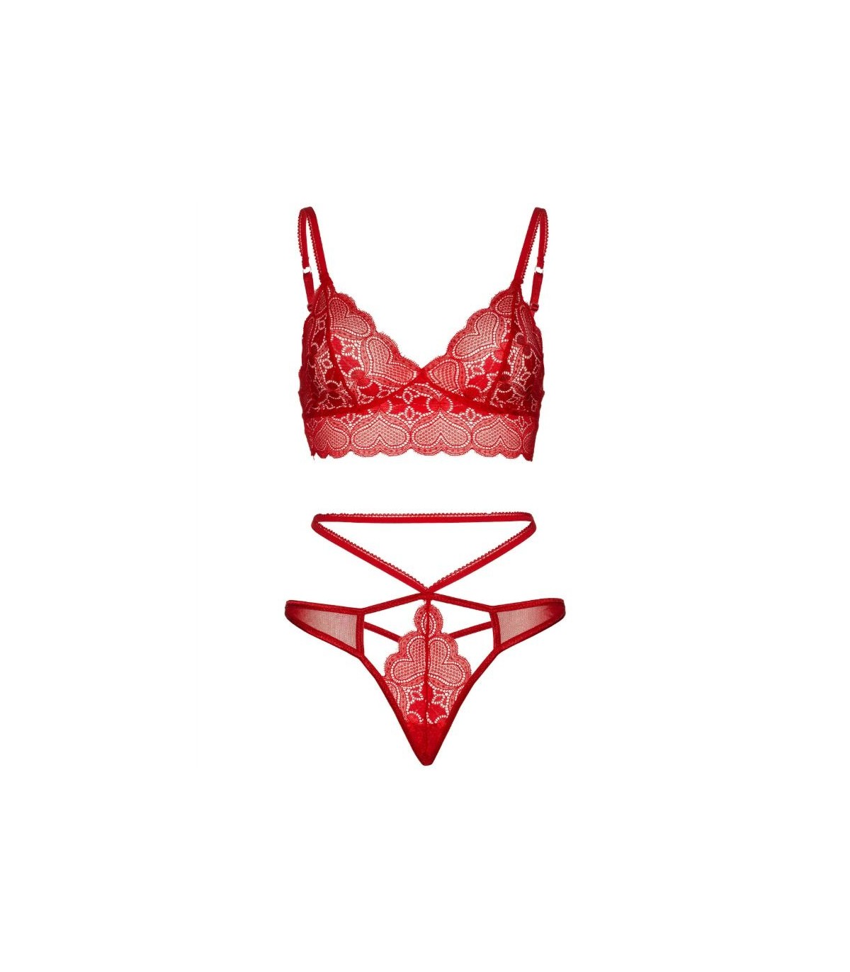 Set de dos piezas compuesto por sujetador de encaje y tanga con recorte a juego fabricado por la prestigiosa marca de lencería Leg Avenue.