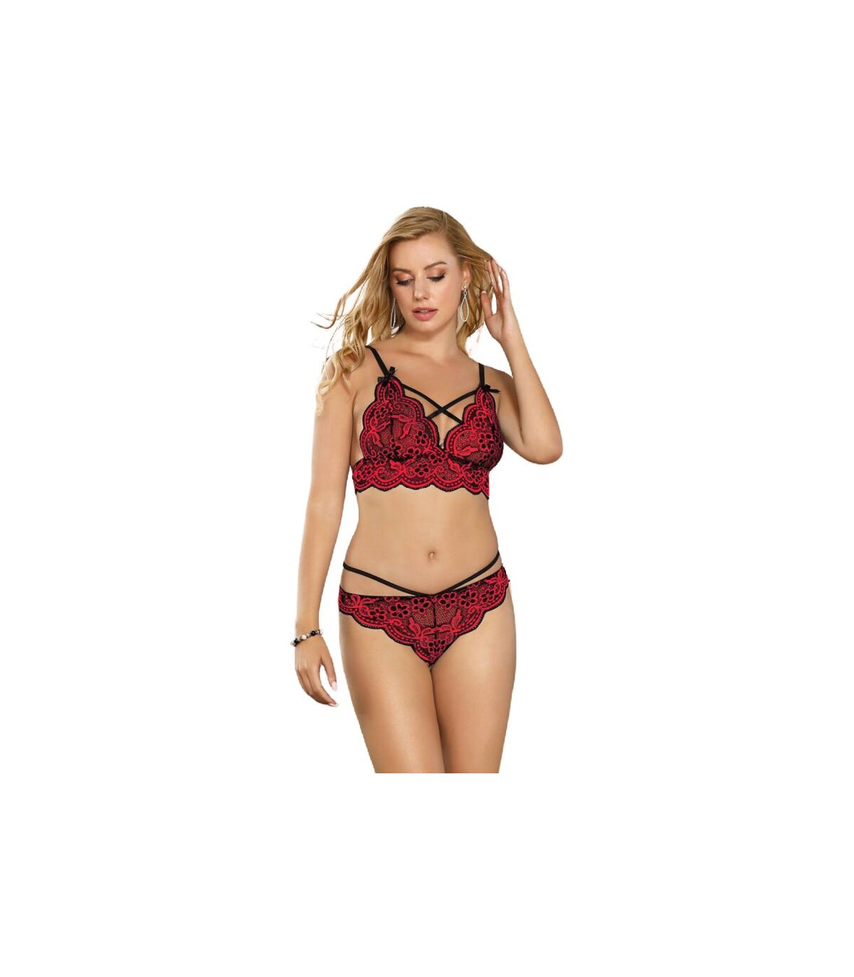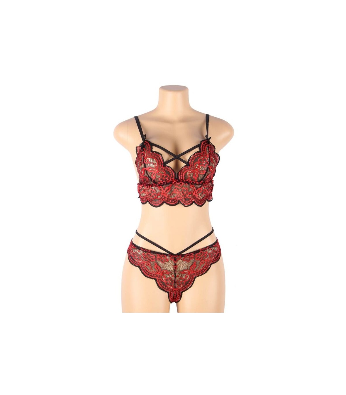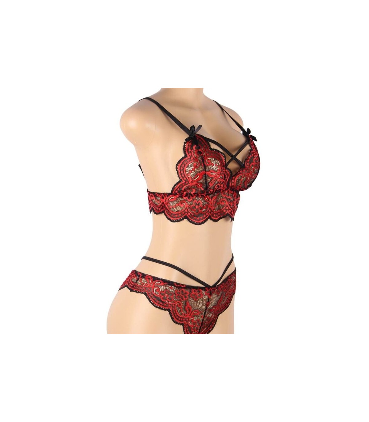 • Compuesto por sujetador y tanga de encajes