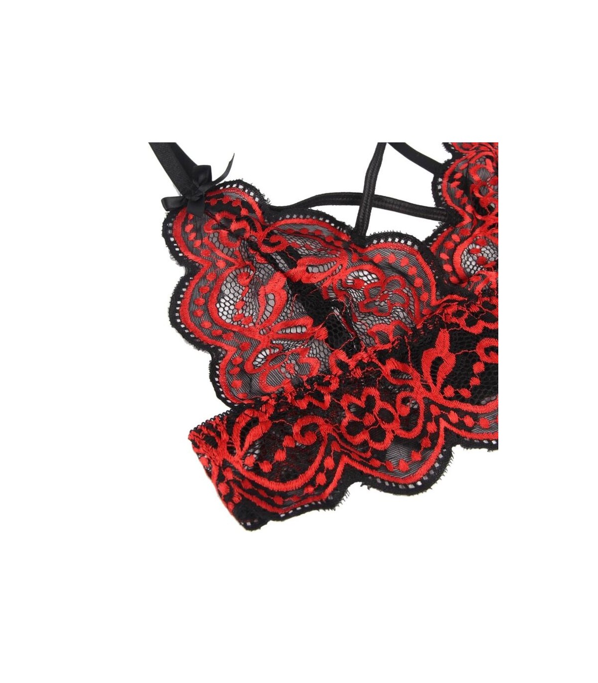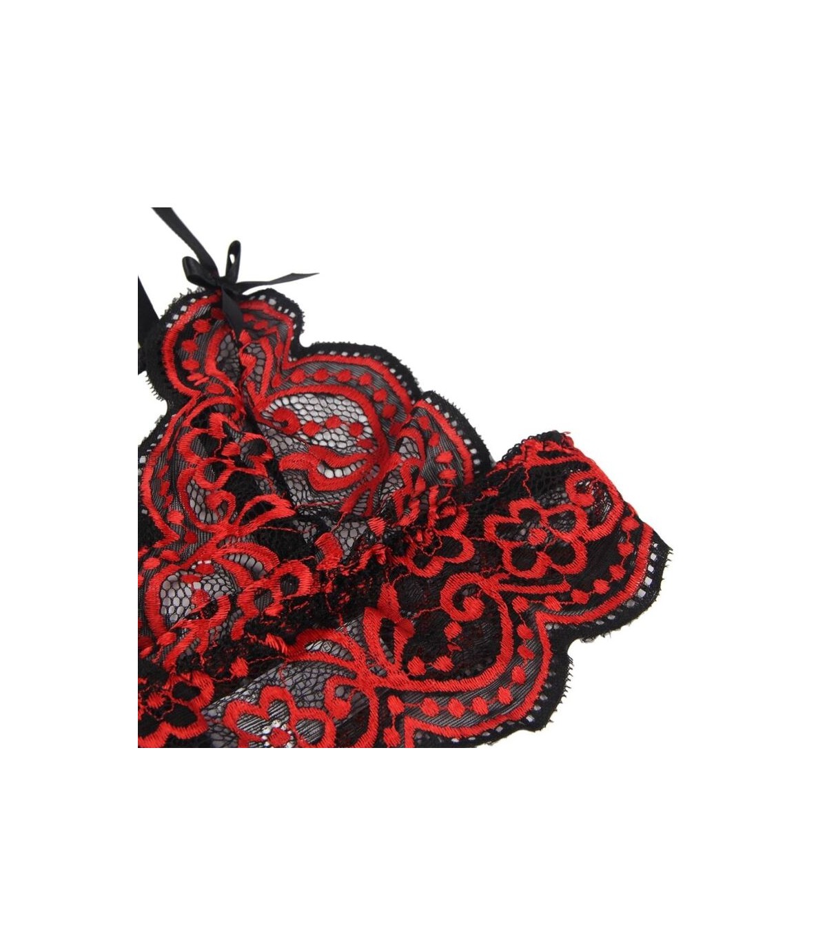 • Genial combinación de encajes florales color rojo y negro