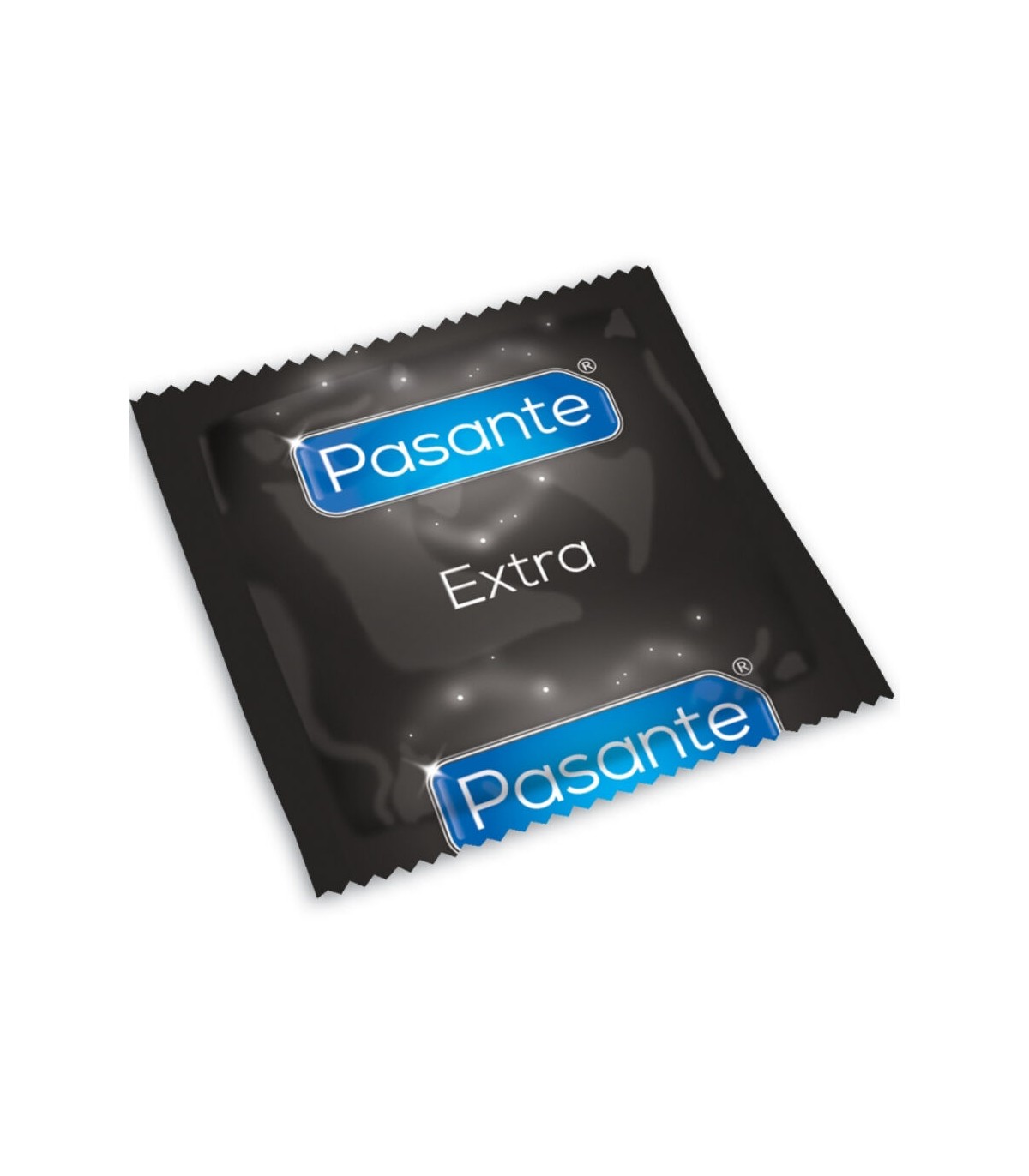 Los condones Pasante Extra son extra gruesos con lubricante adicional. Color liso, paralelo y natural.