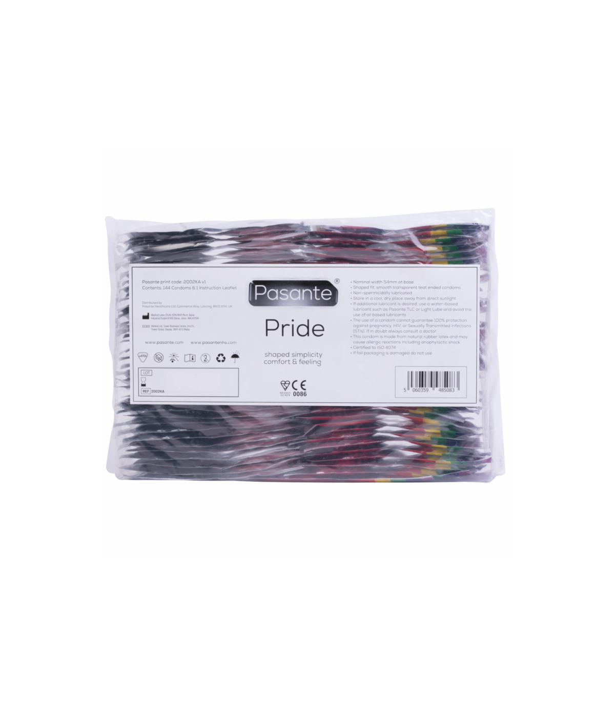 Los condones Pasante Pride tienen una ligera forma cónica para una sensación natural. Suave, de color natural.