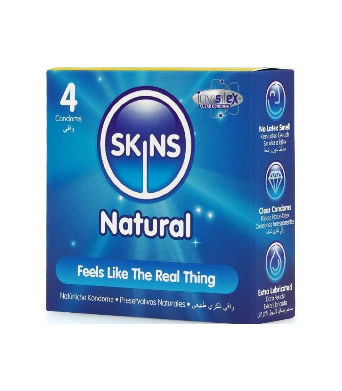 El Skins Natural 4-Pack está diseñado para ofrecer una calidad y un valor premium, ofreciendo un formato listo para usar con hasta un 33 % más de condones por paquete que el líder del mercado. Ideal para minoristas que buscan un producto esencial confiable y de gran éxito que combine discreción, comodidad y calidad. Fabricados con látex natural de alta calidad, los condones Skins Natural son transparentes, resistentes y ultrafinos, ofreciendo una sensación similar a la de la piel. Ligeramente infusionados con vainilla, eliminan el olor típico del látex, mejorando la comodidad y la confianza del usuario.