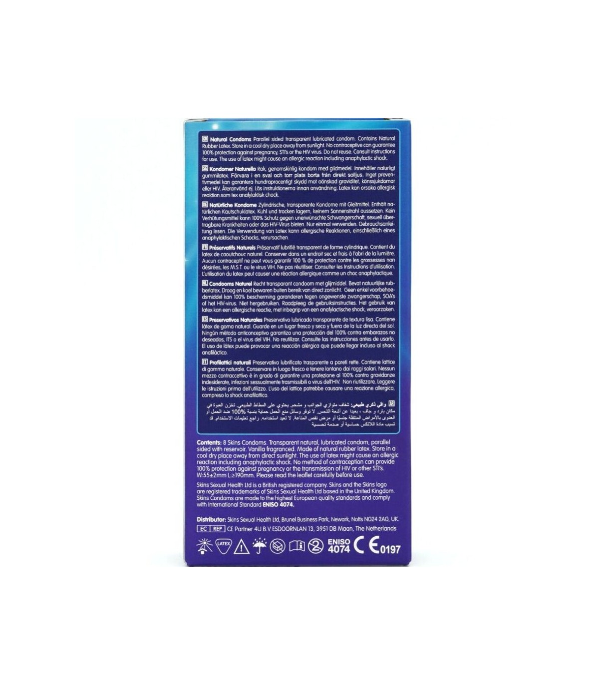 El Skins Natural 8-Pack está diseñado para ofrecer una calidad y un valor premium, ofreciendo un formato listo para usar con hasta un 33 % más de condones por paquete que el líder del mercado. Ideal para minoristas que buscan un producto esencial confiable y de gran éxito que combine discreción, comodidad y calidad. Fabricados con látex natural de alta calidad, los condones Skins Natural son transparentes, resistentes y ultrafinos, ofreciendo una sensación similar a la de la piel. Ligeramente infusionados con vainilla, eliminan el olor típico del látex, mejorando la comodidad y la confianza del usuario.