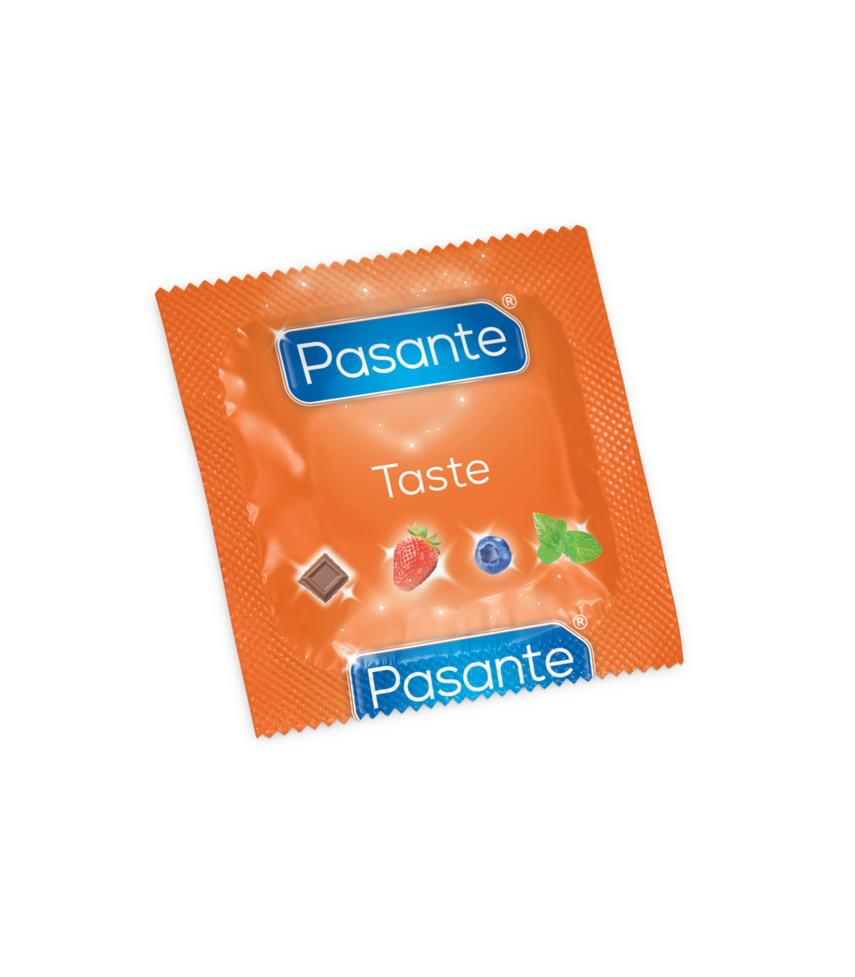 Pasante Taste están aromatizados y coloreados para una sabrosa diversión. Los sabores incluyen Menta Fresh (verde), Fresa (rojo), Chocolate  (marrón) y Árandano t (azul). Suave,.