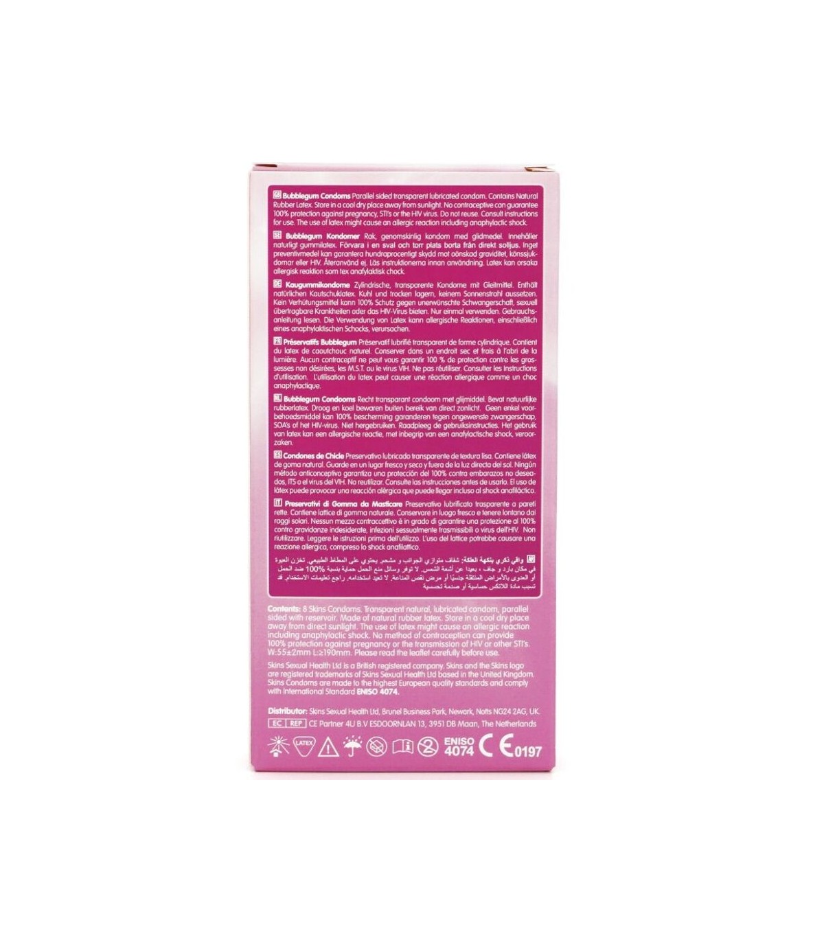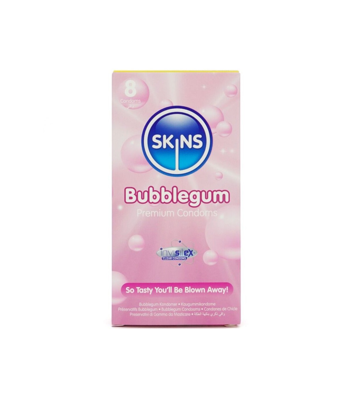 Presentamos nuestro nuevo Pack de 8 Chicle, con un diseño elegante y listo para usar, y hasta un 33 % más de condones que el líder del mercado. Dale un toque divertido y afrutado a tu gama de productos con los condones Skins Blow Me con sabor a Chicle. Diseñados para la seguridad y el disfrute, estos condones envueltos individualmente ofrecen un vibrante aroma y sabor a chicle, lo que los convierte en la opción ideal para mejorar el sexo oral sin sacrificar la protección. Perfectos para tiendas de productos para adultos y bienestar que buscan ampliar su oferta de condones con sabores.
