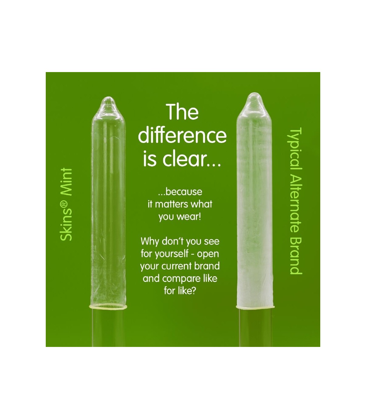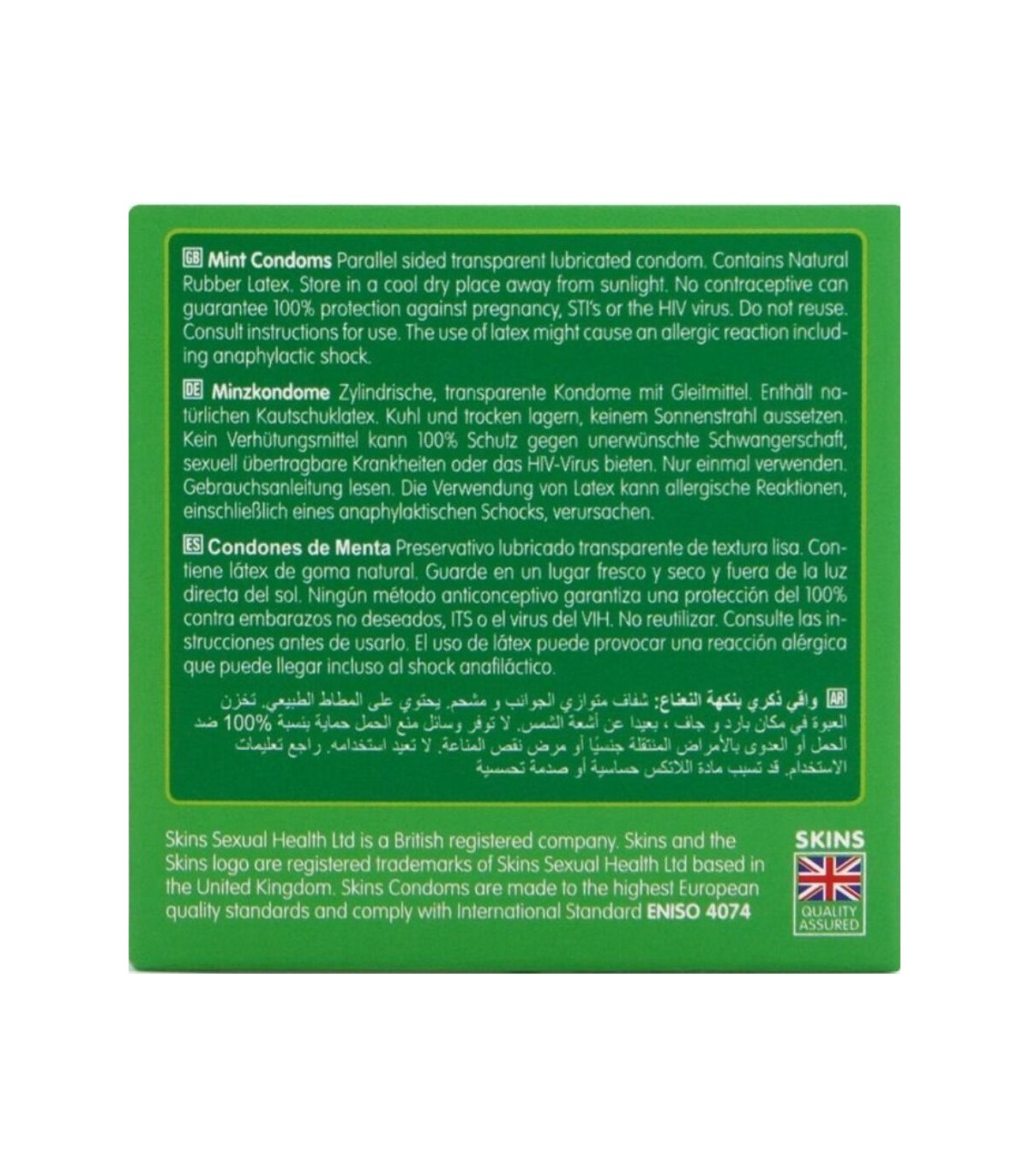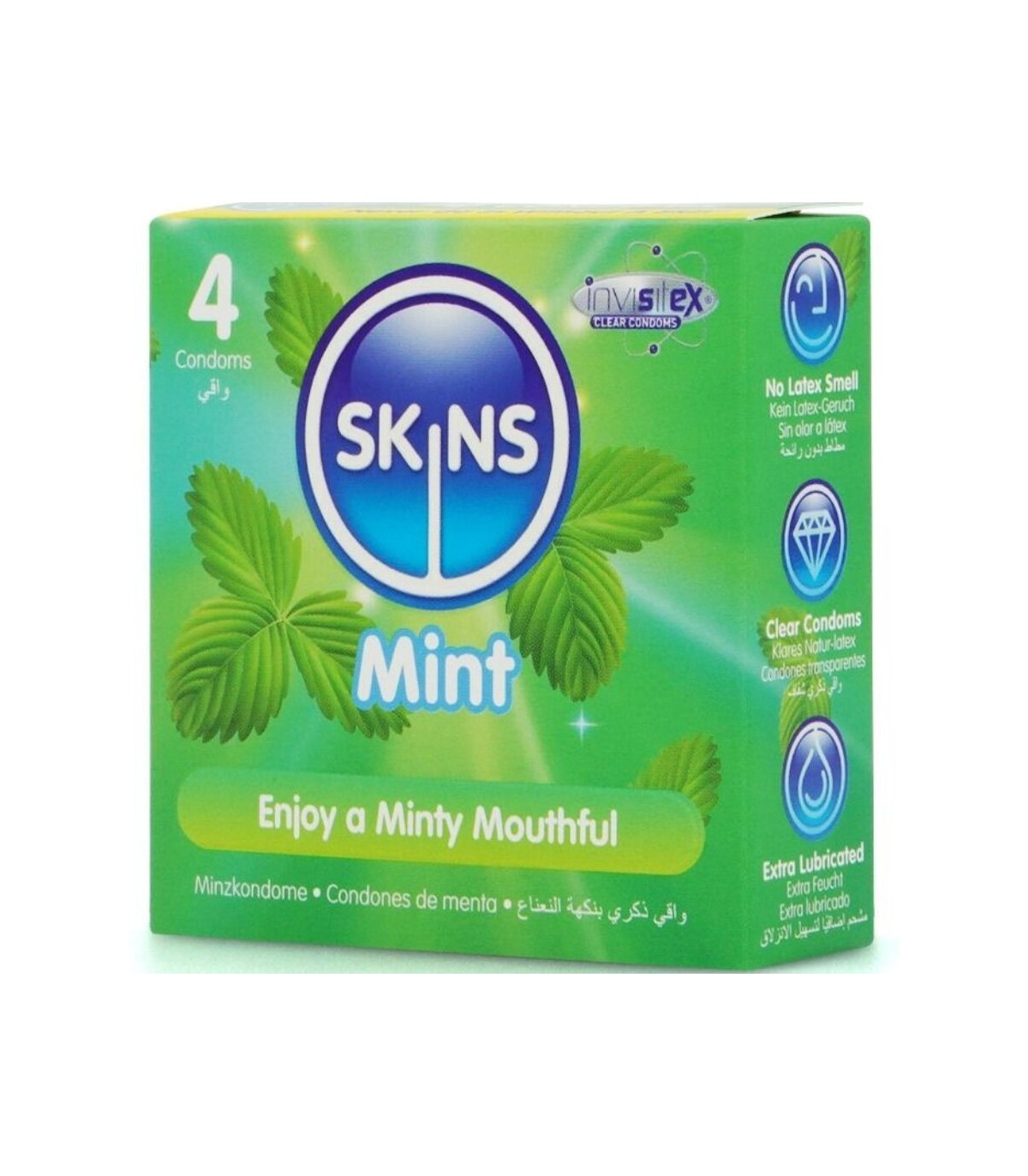 Presentamos el Skins Mint 4-Pack: un formato elegante y listo para la venta que ofrece hasta un 33 % más de condones por paquete que el líder del mercado, brindando un valor excepcional y un atractivo destacado en la góndola. Diseñados para una experiencia de sexo oral más placentera, estos condones tienen un sabor a menta fresca y están hechos de látex natural de primera calidad para mayor claridad, resistencia y una sensación natural. Ultrafinos para una mayor intimidad, están diseñados para sentirse como una segunda piel, a la vez que brindan protección y comodidad confiables.