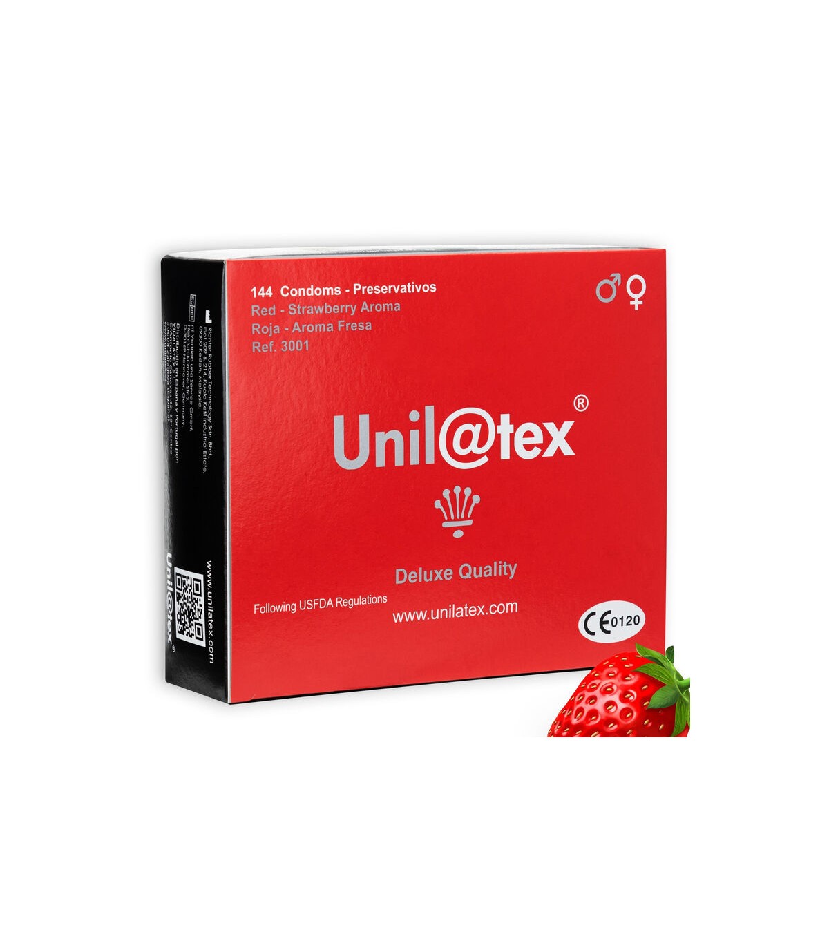 El Unilatex rojo es un preservativo de color rojo con sabor a Fresa, resistente.