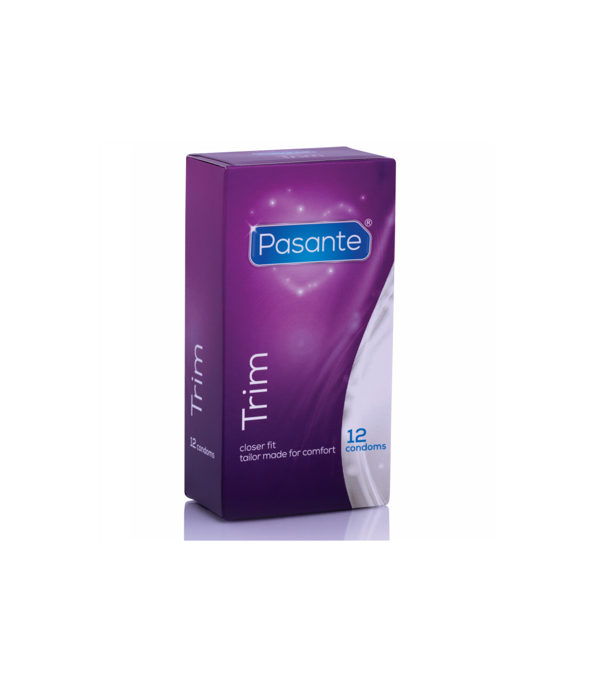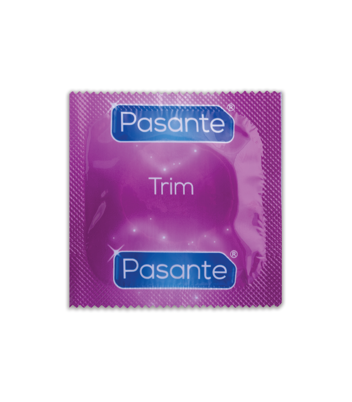Los condones Pasante Trim ofrecen un ancho más estrecho para un ajuste más pequeño. Paralelos, lisos, de color natural .