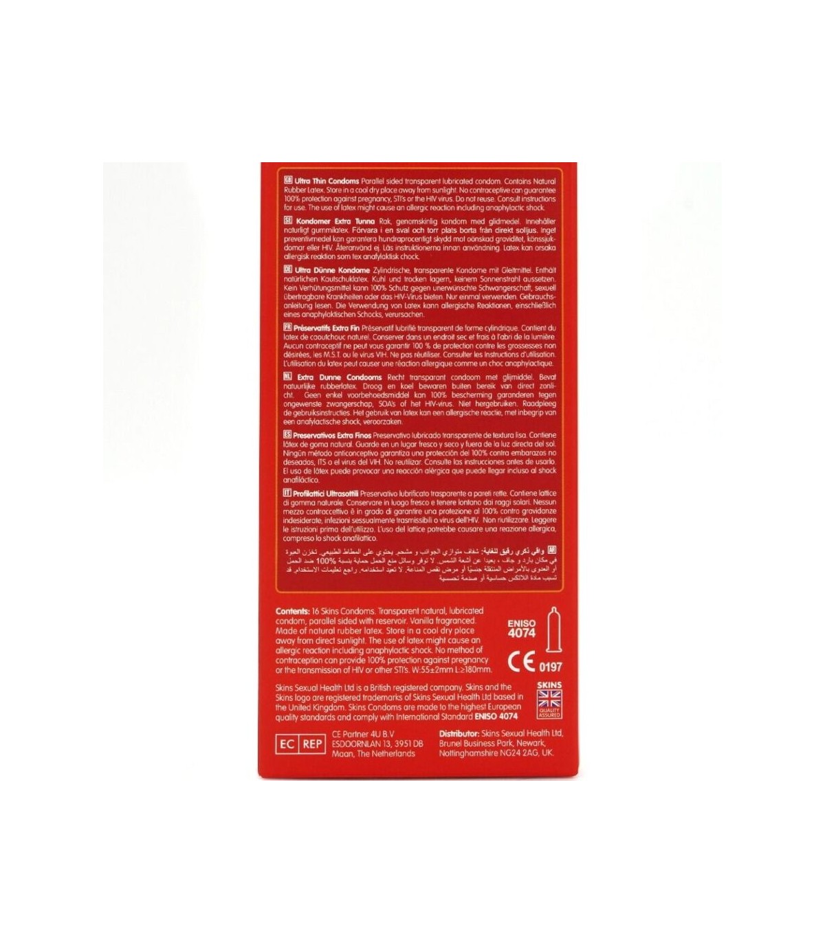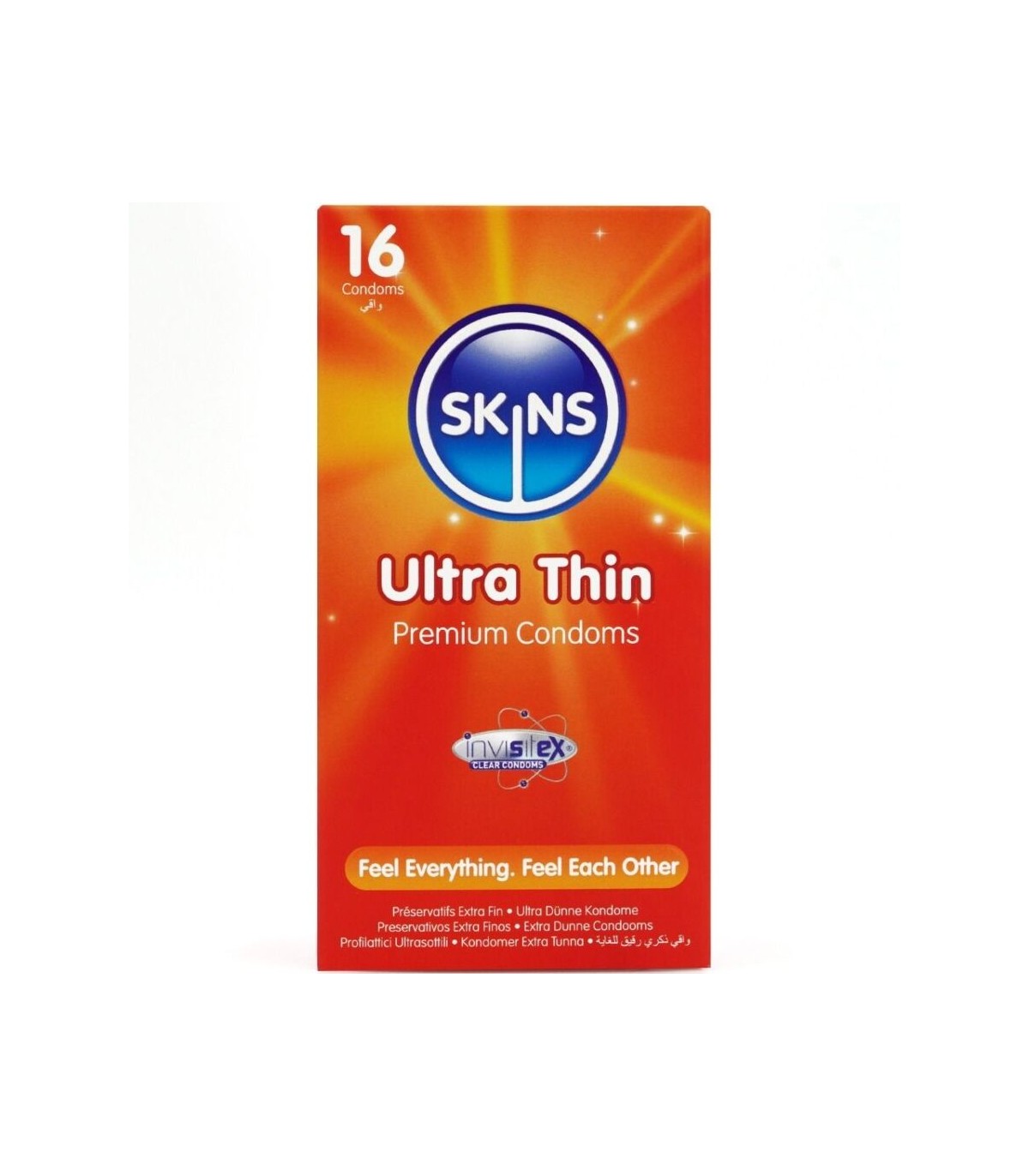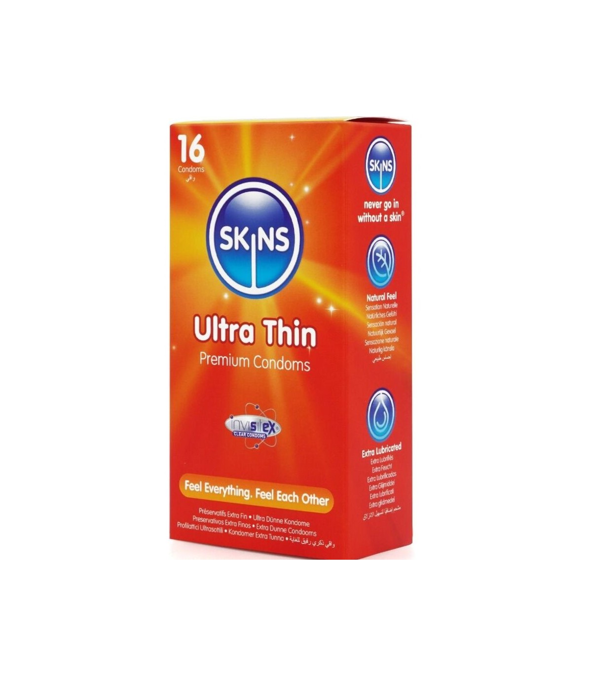 Presentamos el Skins Ultra Thin 16-Pack: un producto económico y listo para usar que ofrece hasta un 33 % más de condones por paquete que el líder del mercado. Diseñado para clientes que buscan la máxima intimidad con protección confiable, este paquete es ideal para tiendas que buscan un producto esencial premium y de alto rendimiento. Los condones Skins Ultra Thin ofrecen todas las ventajas de Skins Natural, pero con un diseño aún más fino para una mayor sensación de intimidad. Fabricados con látex natural de primera calidad, ofrecen resistencia, transparencia y una sensación de segunda piel, lo que los convierte en la opción ideal para quienes priorizan la sensación. Siéntete aún más cerca de tu pareja con el condón Skins Ultra Thin, resistente pero increíblemente fino. Con todas las características de Skins Natural, pero aún más fino, usar un Skins Ultra Thin es tan parecido a una segunda piel.