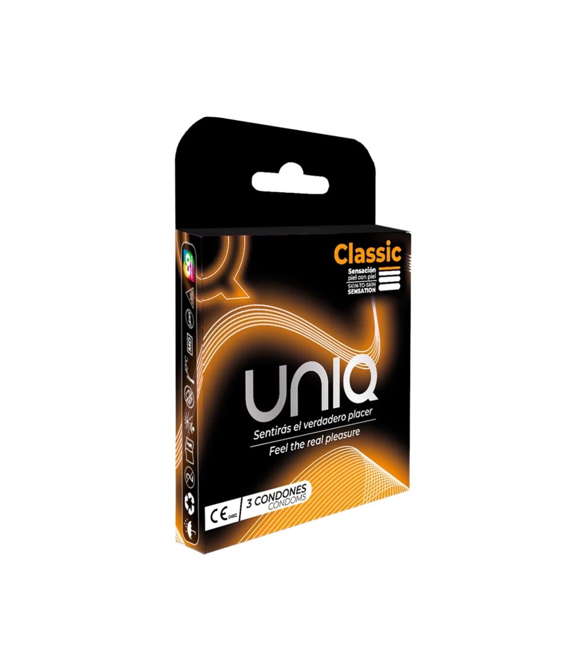 Los preservativos Uniq Classic son transparentes y extrafinos, hechos para el máximo placer y una experiencia sensual. Debido a su grosor de 0,008 mm, estos preservativos te hacen sentir como si no llevaras nada. Los preservativos extrasuaves sin látex, fabricados en resina sintética, son una opción perfecta para aquellas personas alérgicas al látex.