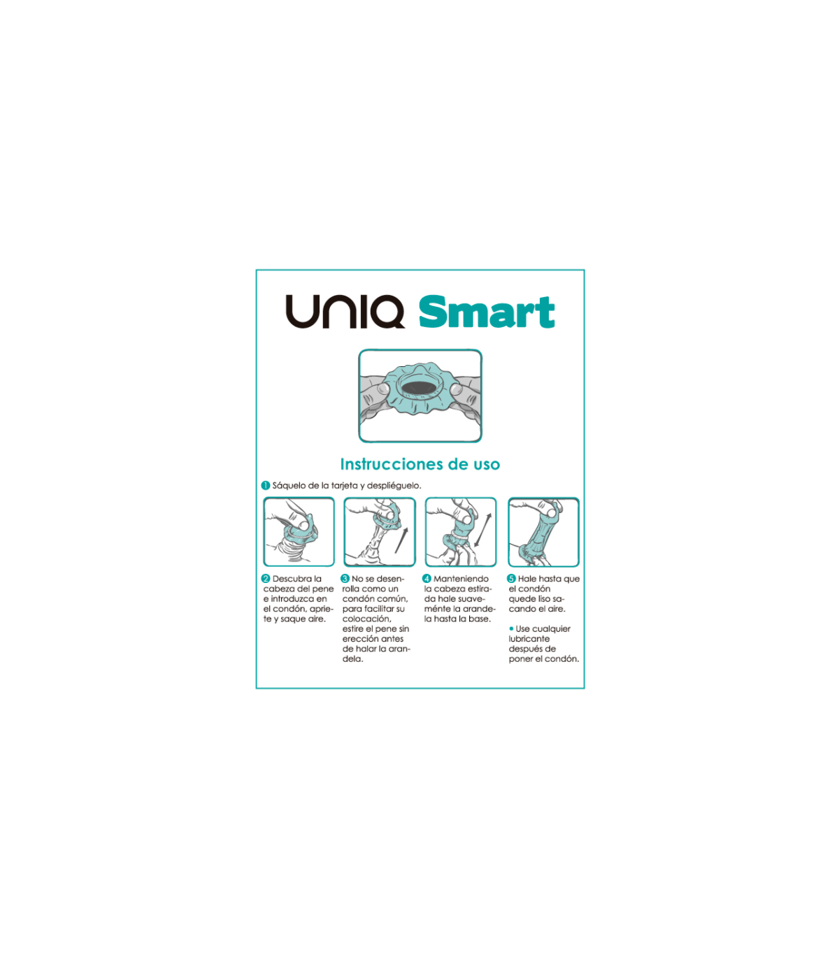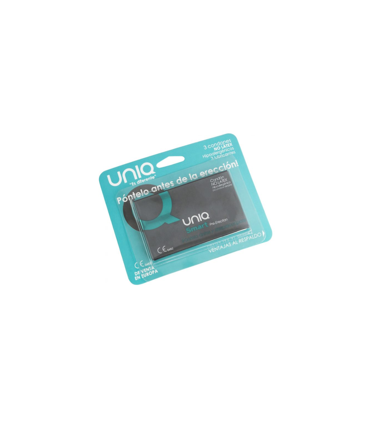 ppUNIQ SMART esta especialmente disenado para ponerse antes de la ereccion permaneciendo puesto casi sin notarlo El condon esta listo cuando tu estas listo sin interrumpir la pasion ppBeneficios pulliEl condon se puede poner hasta dos horas antes de la relacion y despreocuparse liliPreviene las infecciones que se pueden adquirir durante el juego previo liliNo interrumpe la pasion entre el juego previo y la relacion sexual liliUna vez con la ereccion se adhiere mas al pene produciendo ultra sensibilidad liliMaterial hipoalergenico transparente extra suave inodoropLos preservativos sin latex fabricado en Resina sintetica Polietileno son los unicos que ofrecen un espesor de 001 002 mm son completamente adaptables y de talla unica con un ancho nonimal desde 60 a 90 mm y un largo de 170 190 mm completamente adaptable ppContiene tres condones y tres sachets de lubricante adicionales