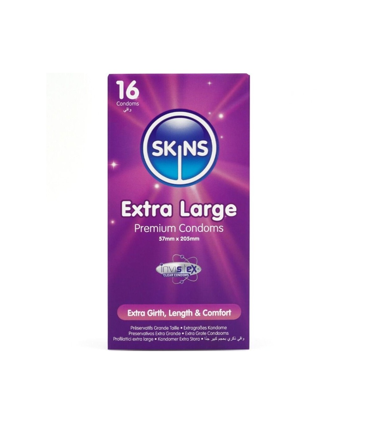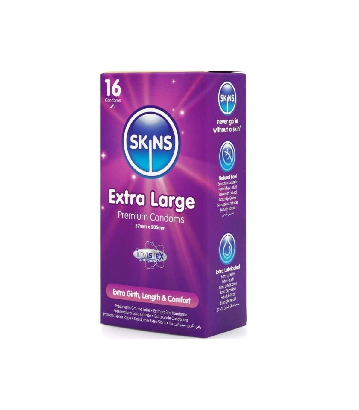 Presentamos el Skins Extra Large 16-Pack, un formato listo para la venta que ofrece hasta un 33 % más de condones por paquete que el líder del mercado, diseñado específicamente para satisfacer las necesidades de los clientes que buscan un ajuste más generoso sin comprometer la comodidad ni la calidad. Desarrollados mediante pruebas directas con consumidores, los condones Skins XL se crearon con la participación de un grupo de hombres con un alto nivel de dotación que evaluaron las tallas grandes líderes del mercado para determinar el ajuste ideal. El resultado: una circunferencia de 57 mm y una longitud de 205 mm, que ofrecen comodidad, confianza y rendimiento óptimos. Fabricados con látex natural de primera calidad, estos condones son ultrafinos pero resistentes, proporcionando una sensación natural y una sensación de segunda piel.
