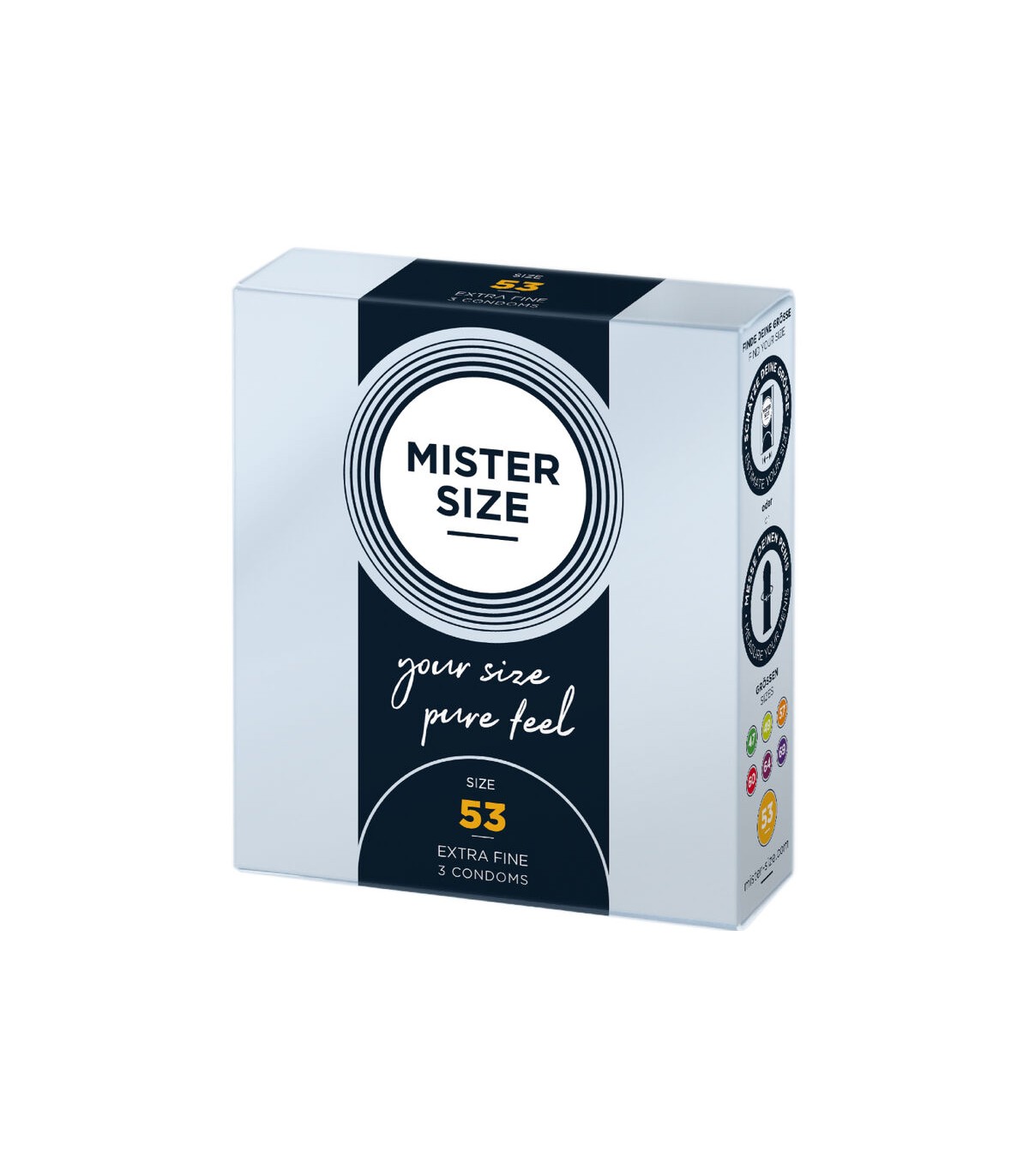 Los preservativos de MISTER SIZE siempre se adaptan perfectamente al usuario, lo que se nota inmediatamente durante las relaciones sexuales. Un ajuste firme y seguro garantiza que el preservativo apenas se note y que estás bien protegido durante las relaciones sexuales, lo que te permite disfrutar plenamente de tus momentos juntos.
