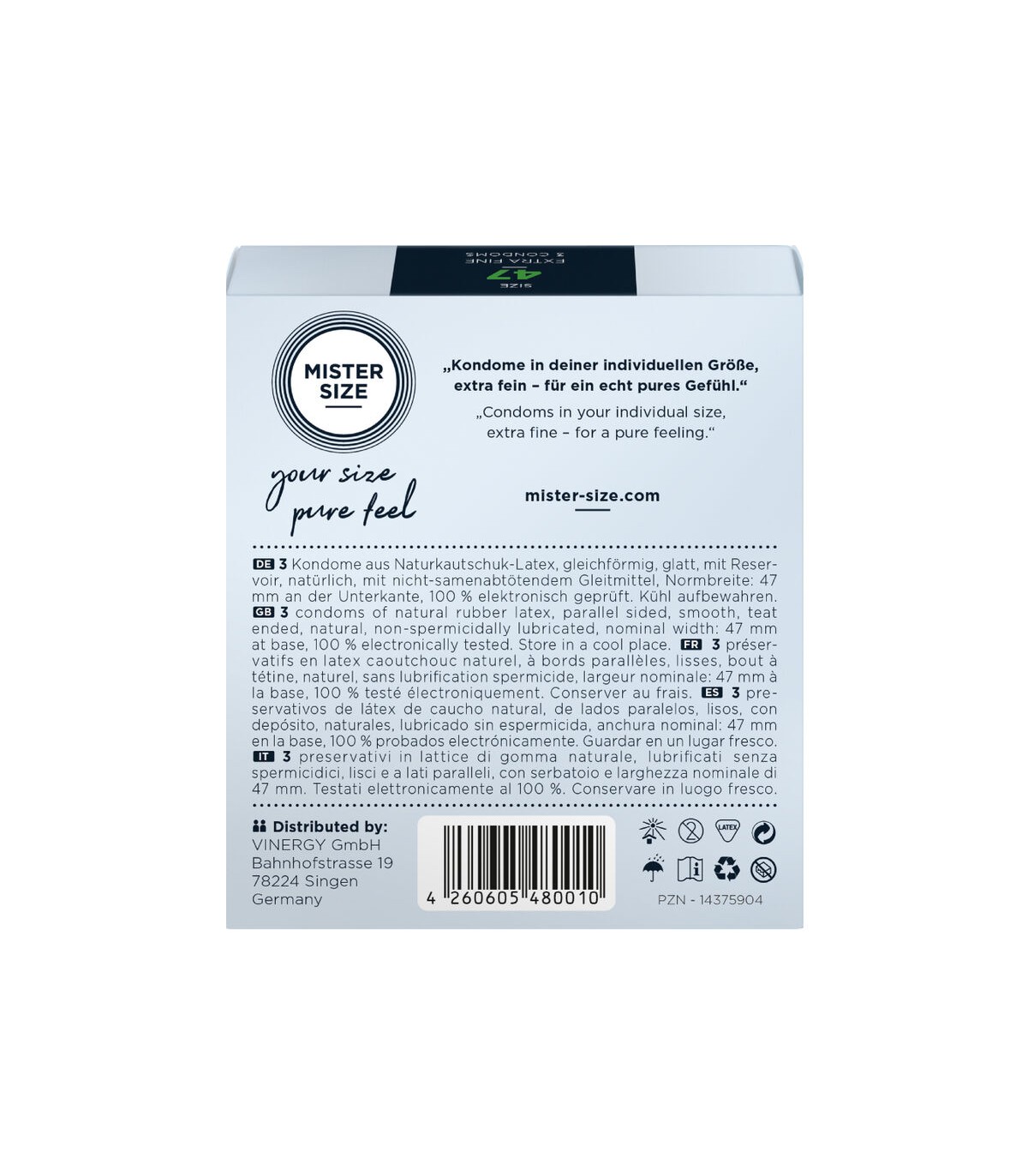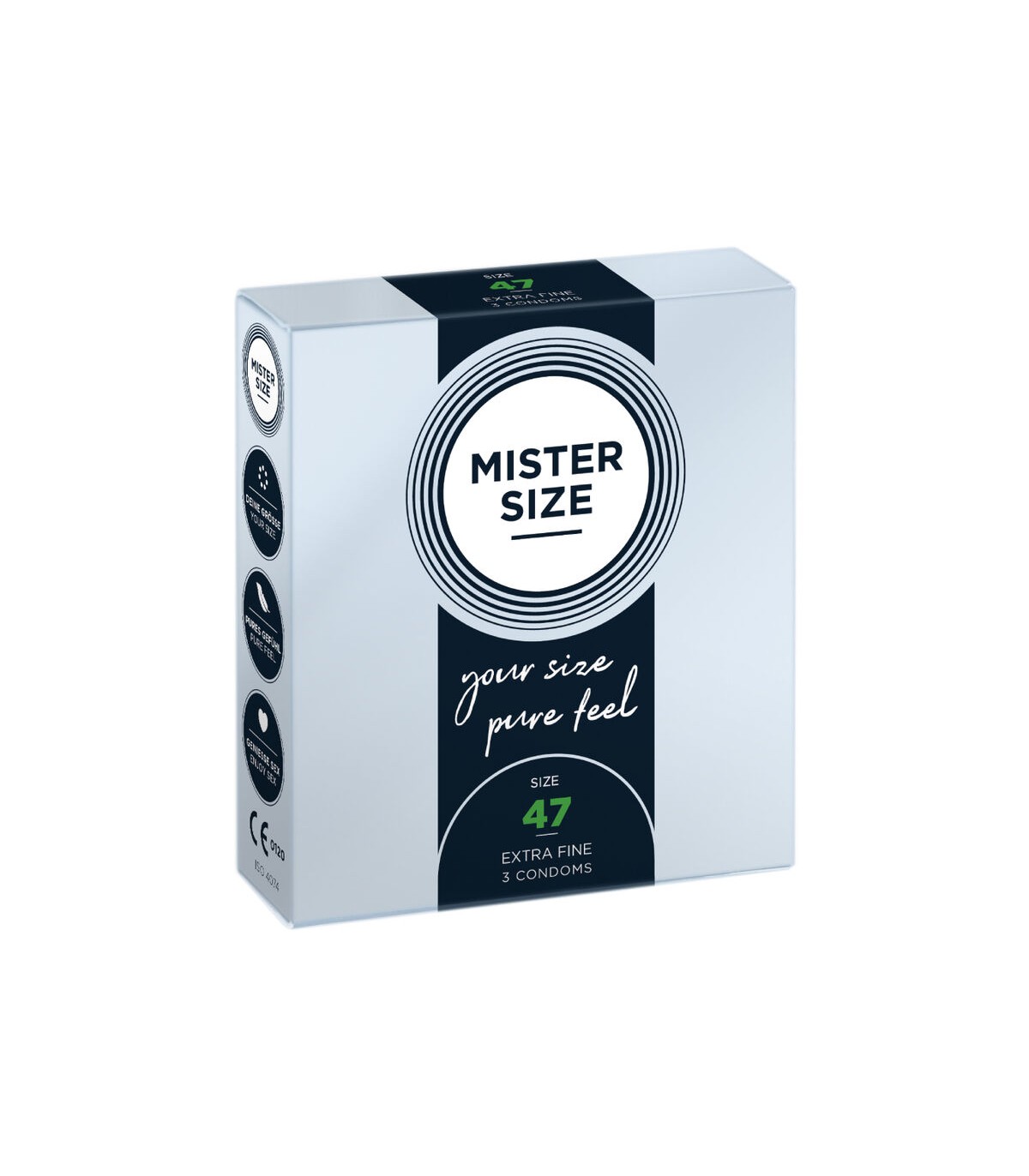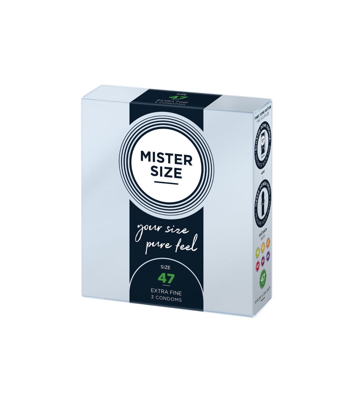 El MISTER SIZE 47 es el más pequeño de nuestros siete tamaños. Sin embargo, esto no tiene por qué ser incómodo para usted. El pene más delgado permite una mayor flexibilidad durante el sexo y puede brindarle las mejores sensaciones; especialmente con la preparación adecuada.