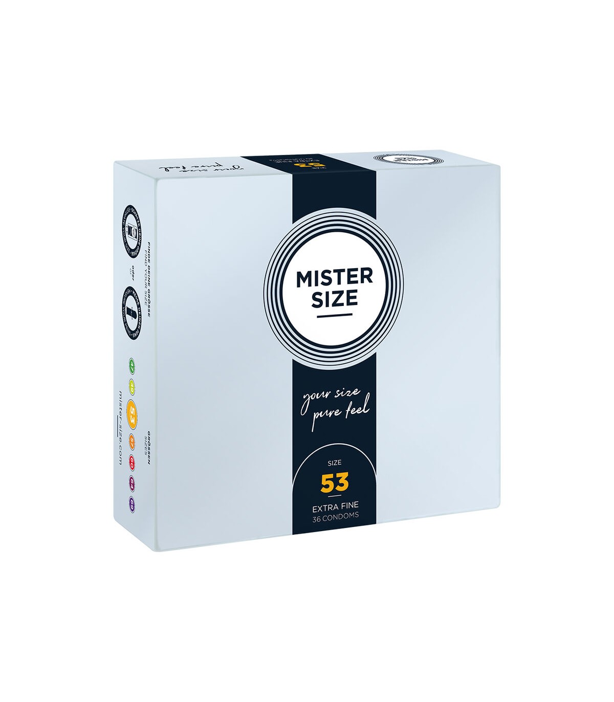 Los preservativos de MISTER SIZE siempre se adaptan perfectamente al usuario, lo que se nota inmediatamente durante las relaciones sexuales. Un ajuste firme y seguro garantiza que el preservativo apenas se note y que estás bien protegido durante las relaciones sexuales, lo que te permite disfrutar plenamente de tus momentos juntos.
