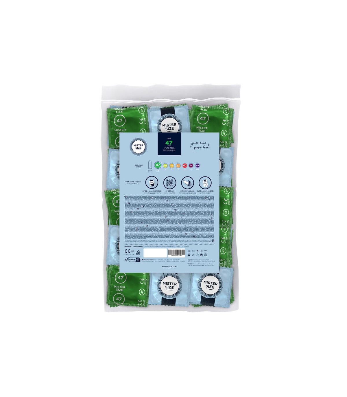 El MISTER SIZE 47 es el más pequeño de nuestros siete tamaños. Sin embargo, esto no tiene por qué ser incómodo para usted. El pene más delgado permite una mayor flexibilidad durante el sexo y puede brindarle las mejores sensaciones; especialmente con la preparación adecuada.