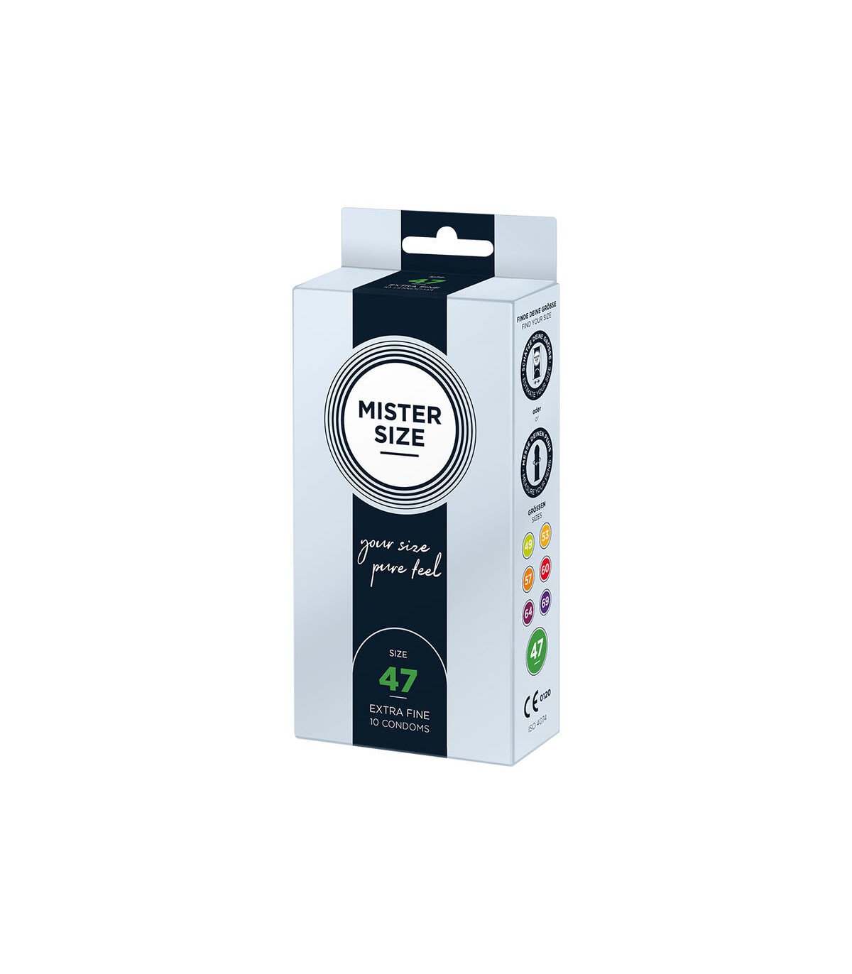 El MISTER SIZE 47 es el más pequeño de nuestros siete tamaños. Sin embargo, esto no tiene por qué ser incómodo para usted. El pene más delgado permite una mayor flexibilidad durante el sexo y puede brindarle las mejores sensaciones; especialmente con la preparación adecuada.