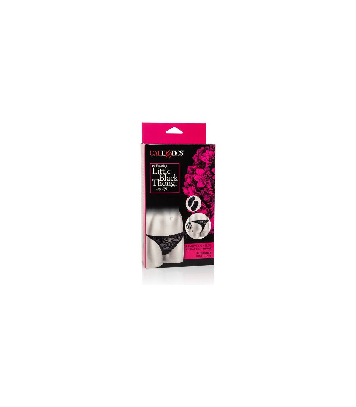 Tanga de encaje negro con bala vibradora extraíble con 10 funciones distintas.