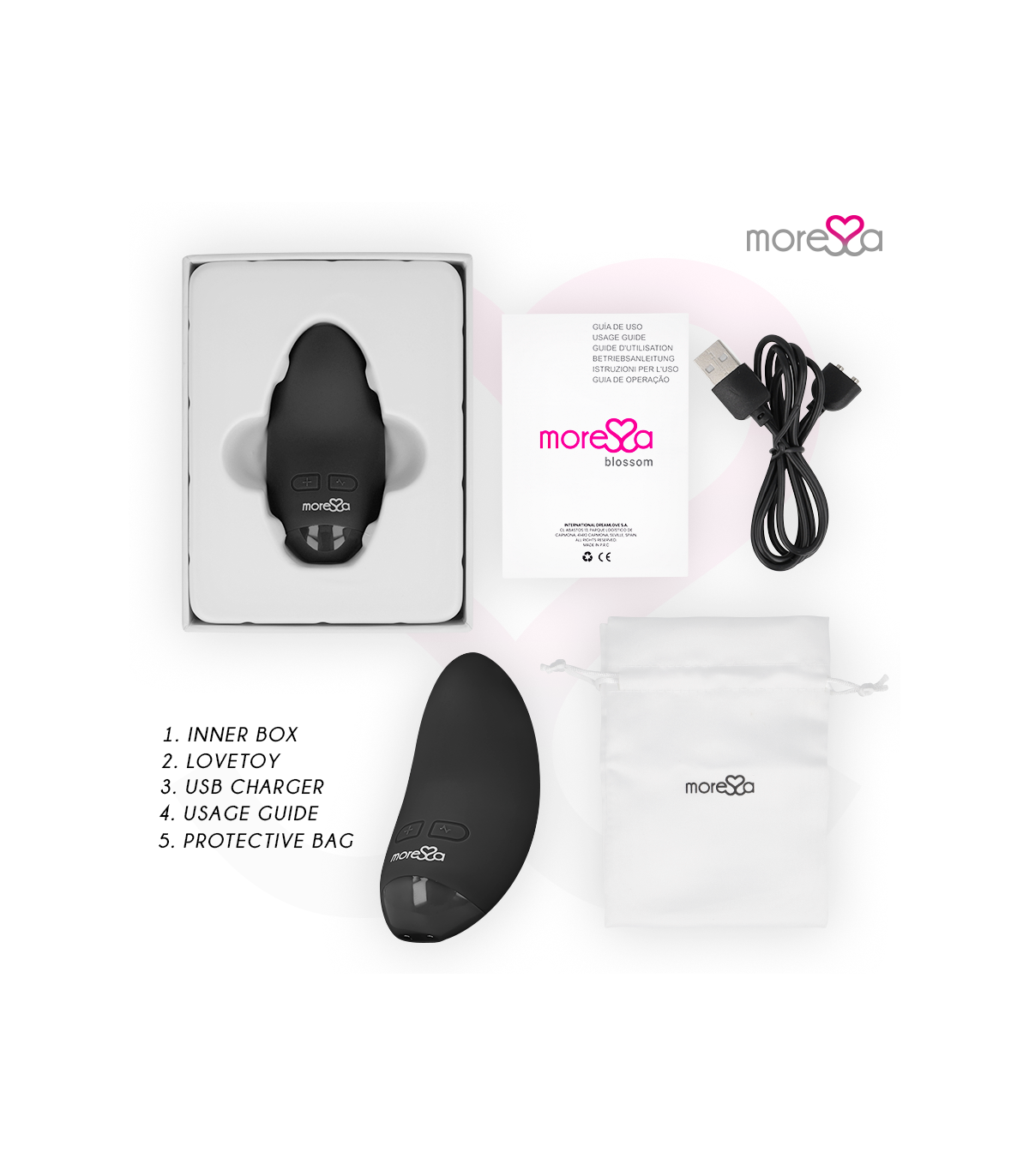 Moressa es la marca referente por su diseño, calidad y tecnología. Hemos desarrollado un producto innovador y mimado cada proceso de fabricación para conseguir el mejor resultado. Moressa es símbolo de energía, fuerza y garantía. Comprar un Sextoy Amoressa es sentirse reflejado con la actualidad. Cada Juguete Amoressa te transportara a diferentes sensaciones. Un resultado inigualable gracias a la silicona Premium confortable y los diseños ergonómicos.
