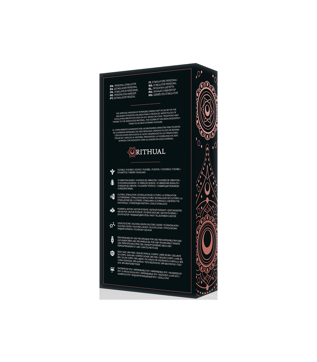 Rithual es filosofía de salud, placer y bienestar. Cuidadosamente preparada para potenciar la felicidad personal y el bienestar del ser humano. La marca es líder de ventas con Rithual Shushu, por ello el lanzamiento de nuevos juguetes complementarios todo objeto de placer para una vida más saludable y más feliz gracias a la satisfacción sexual. Garantía total de 2 años en todos los juguetes Rithual relé un placer seguro.