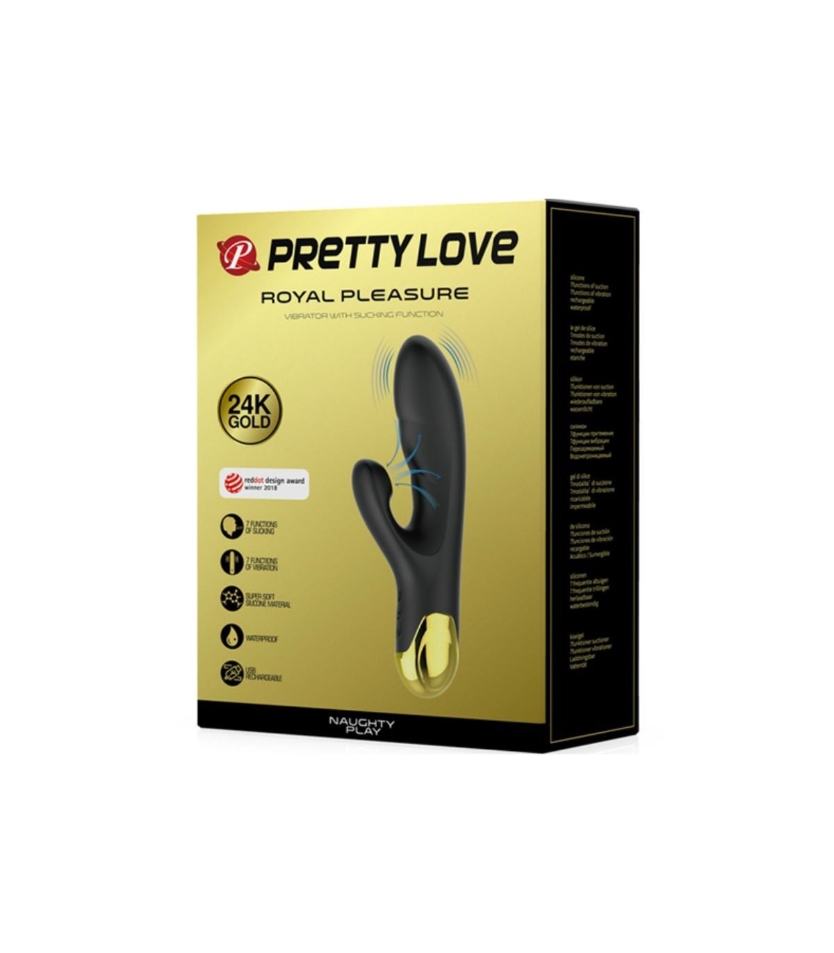 Pretty Love-Naughty, con un elegante diseño, es una serie de lujo de juguetes sexuales hecha con silicona líquida médica gradual y aleación de zinc bañada en oro de 24 kilates. Este juguete con 7 funciones de vibración y 7 modos de succión. Una función de memoria inteligente garantiza que se preserven la configuración favorita siempre que se utilice.