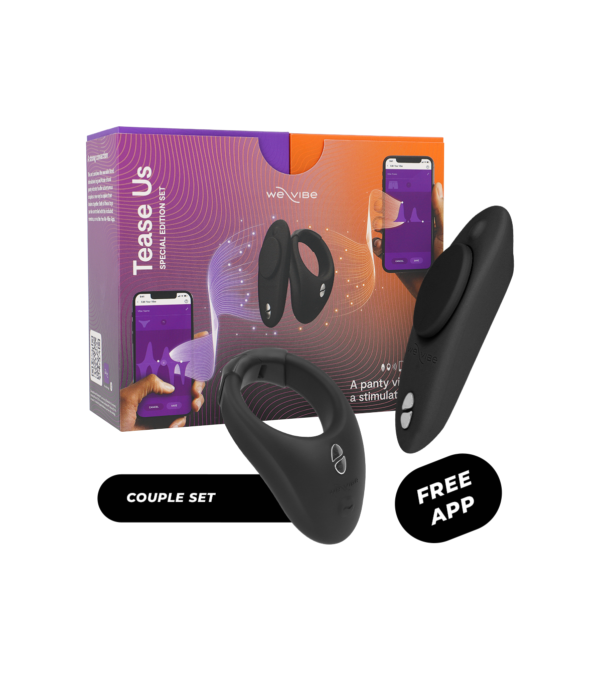 Tease Us es un conjunto de vibradores portátiles controlados por una aplicación con algo para cada pareja. Provoque y tiente sutilmente donde quiera que vaya con el anillo de estimulación vibratorio Bond y la poderosa vibración de las bragas Moxie. Personaliza la colección según tus necesidades: también disponible como dos Moxies o dos Bonds.