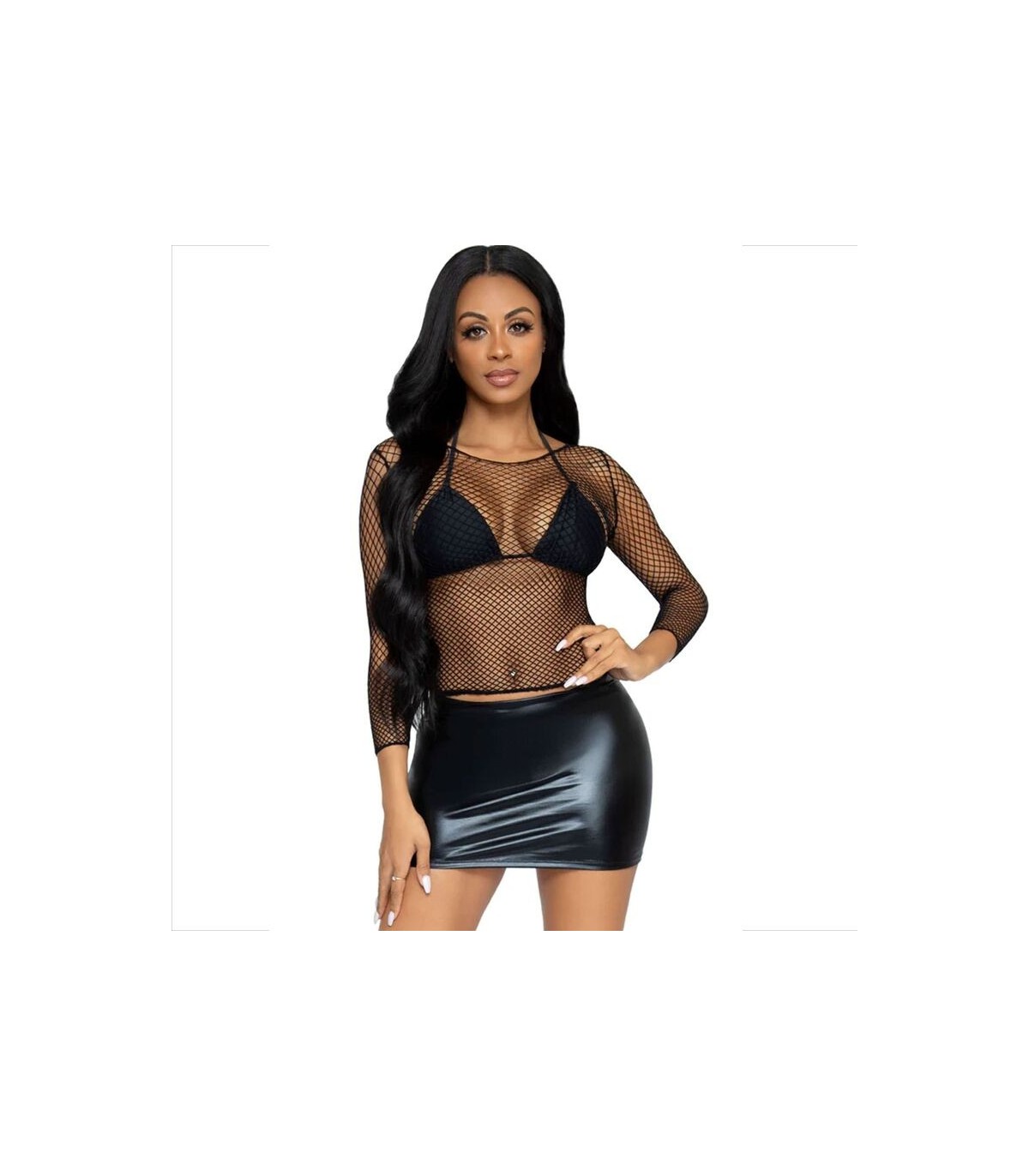 Este diseño provocador redefine la sensualidad, fusionando la textura intrigante de la red con un estilo moderno y vanguardista.