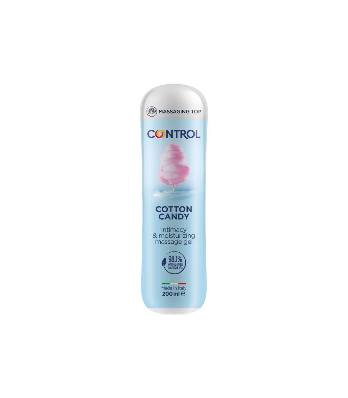 Gel de masaje ultrasensorial al algodón de azúcar. Gracias a su acción masajeante e hidratante al dulce aroma del algodón de azúcar, Cotton Candy envolverá tus momentos íntimos en un inolvidable carrusel de aromas.