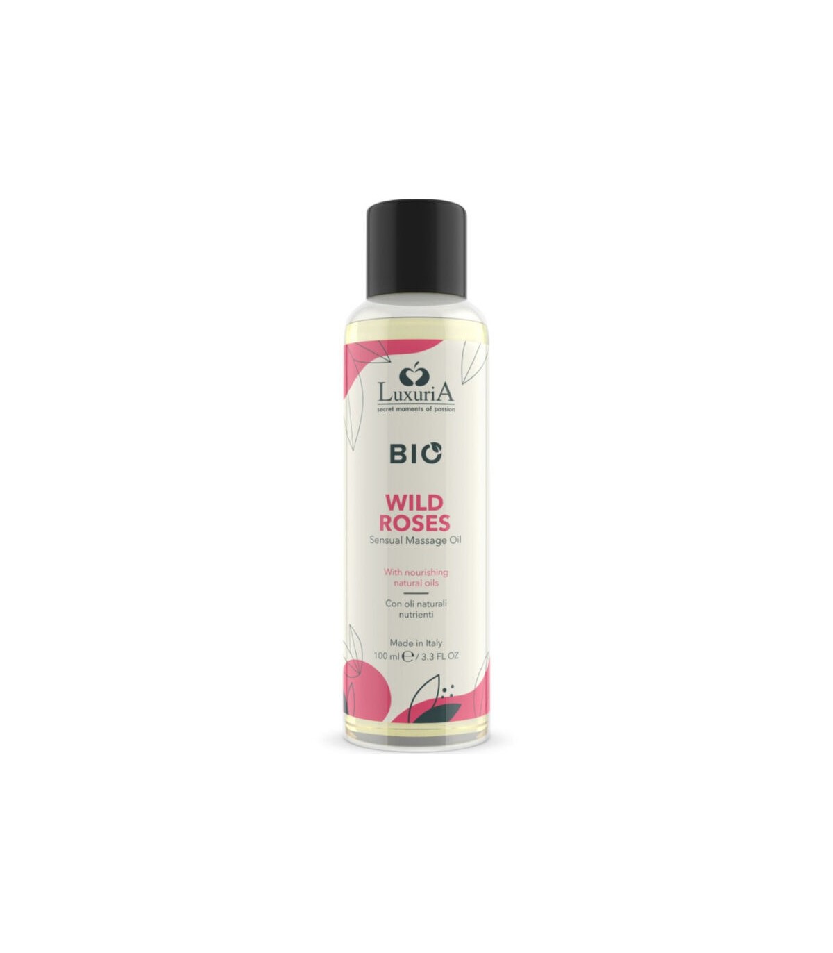 Luxuria BIO Wild Roses es un aceite de masaje de la nueva línea Bio de Luxuria. Su fórmula nutritiva a base de aceites vegetales totalmente naturales y esencias estimulantes refinadas proporciona una hidratación intensa, dejando la piel suave y perfumada. El aceite estimulará tus sentidos con sus notas floreales y de pétalos de rosa que te acompañarán durante todo el masaje.