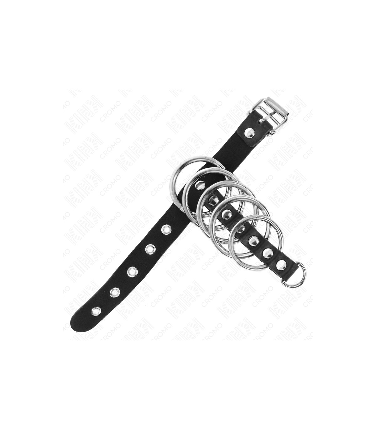 KINK - ANILLO PENE CUERO CORREA CON CERRADURA 21 X 2 CM Y 5 ANILLOS METAL DE 3 CM A 4 CM