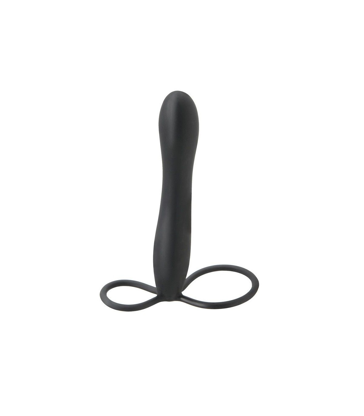 El anillo de silicona en la parte superior del pene actúa como un anillo para mejorar el rendimiento, mientras que el anillo inferior más grande que rodea los testículos intensifica sus orgasmos. Al instante el hombre se convierte en el doble de lo que era antes, gracias al dildo de silicona suave que se sitúa por debajo de su pene y está listo para trabajar el doble.