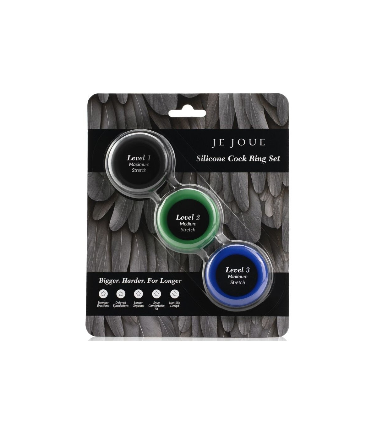 El set de anillos de silicona de Je Joue tiene 3 anillos de silicona de alto grado que van apretando progresivamente, lo que le permite experimentar con diferentes sensaciones y combinaciones, ¡cada anillo tiene una textura suave y sedosa que garantiza la máxima comodidad y se puede usar alrededor del pene, los testículos o ambos!
