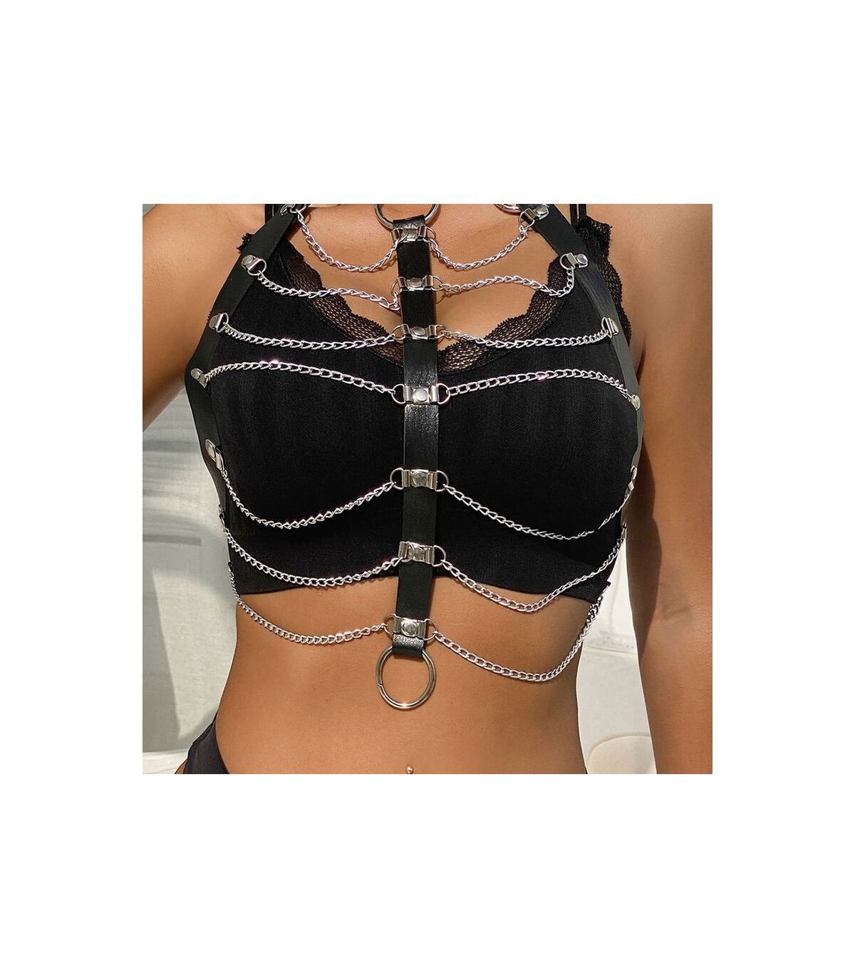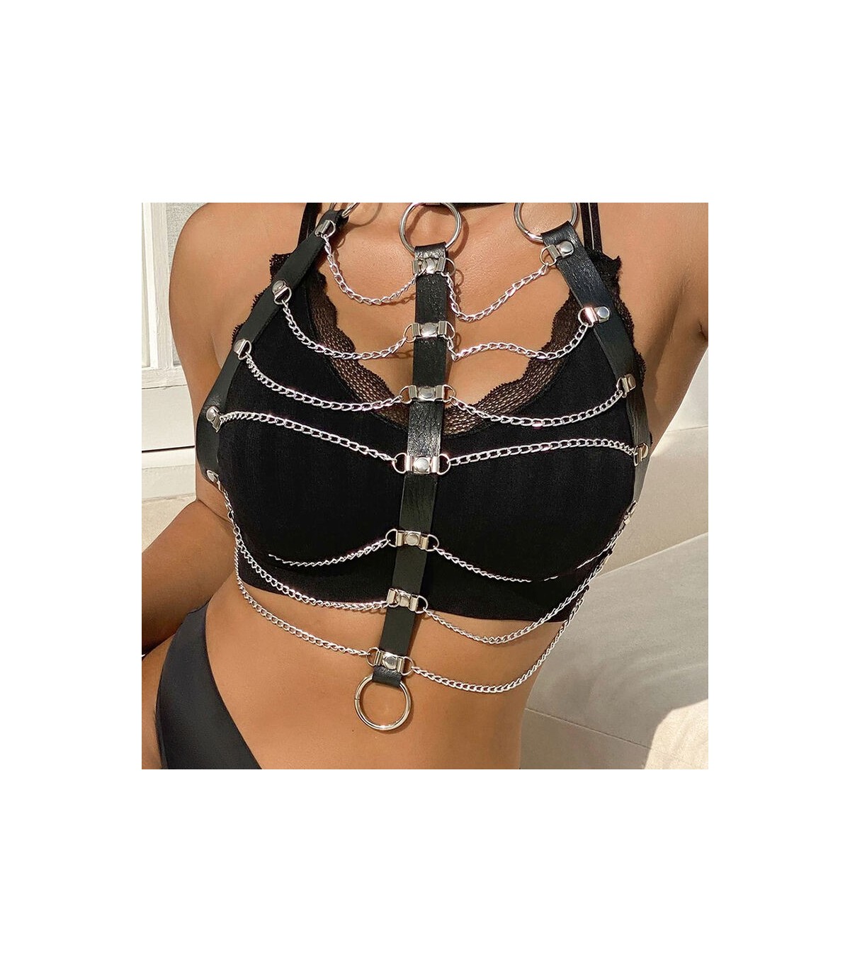 SUBBLIME - ARNÉS DE PECHO CADENAS CUERO NEGRO TALLA ÚNICA