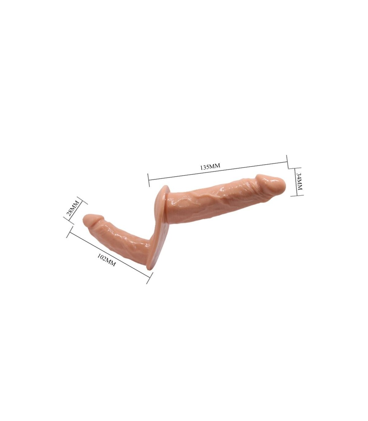 Doble pene para doble placer! Simplemente inserte este doble pene dentro de la cuerda del arnés e inserte el pene dentro de usted mismo y empuje con lujuria... Para un ajuste perfecto, la cintura del cordón negro del arnés es ajustable. Ambos grandes consoladores TPR brindan placer debido a su inusual textura acanalada. Esto significa que tanto la persona pasiva como la activa se estimulan al mismo tiempo.