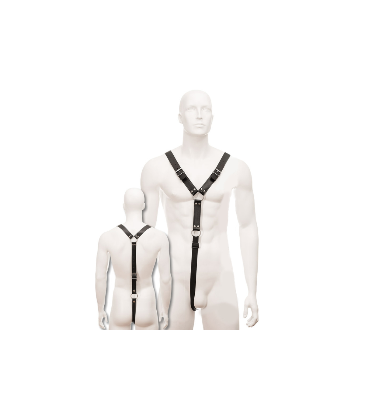 Practica el BDSM, con este Arnes leather que cumplirá con todas tus exigencias, completamente ajustable y con anilla metal para el pene.