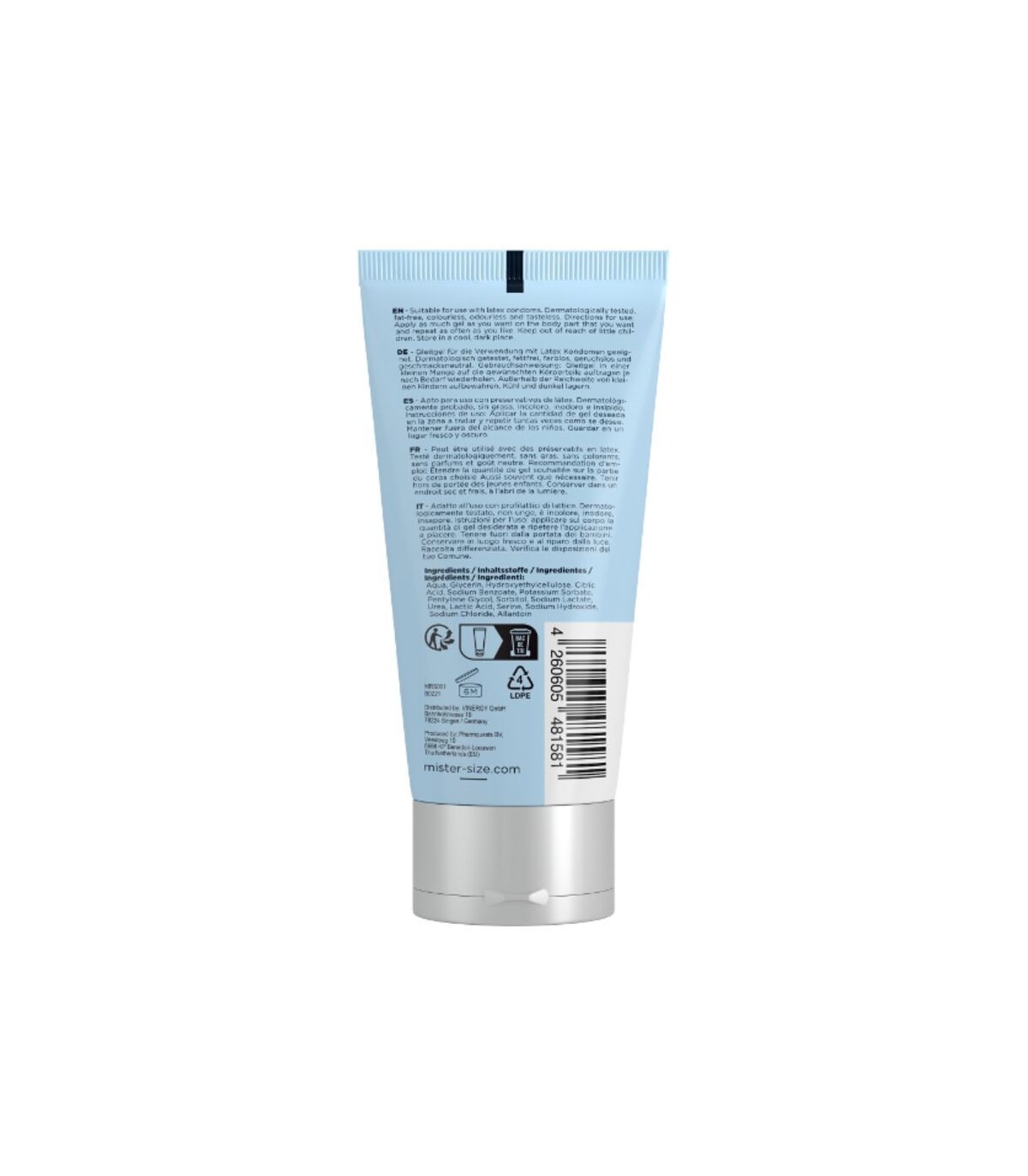 El gel lubricante biológico MISTER SIZE contiene solo ingredientes biológicos de alta calidad para una compatibilidad óptima con la piel. El gel lubricante biológico MISTER SIZE está dermatológicamente probado, no contiene grasa, es incoloro, inodoro y sin sabor.