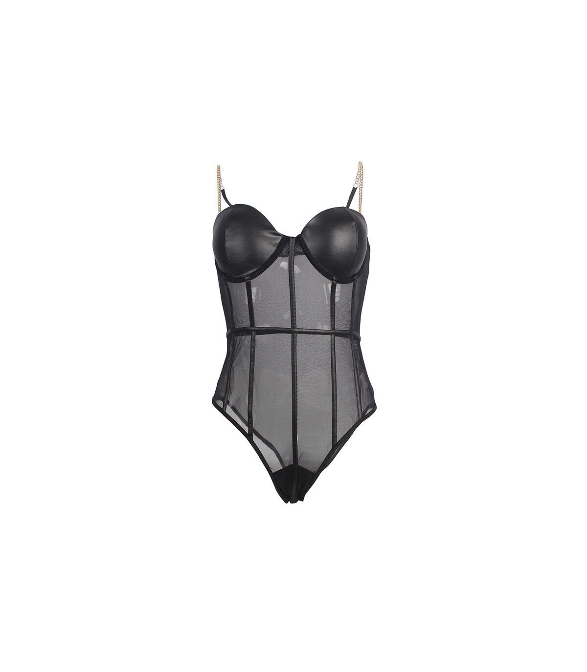 SUBBLIME - BLACK CHAIN SUSPENDERS BODYSUIT S/M