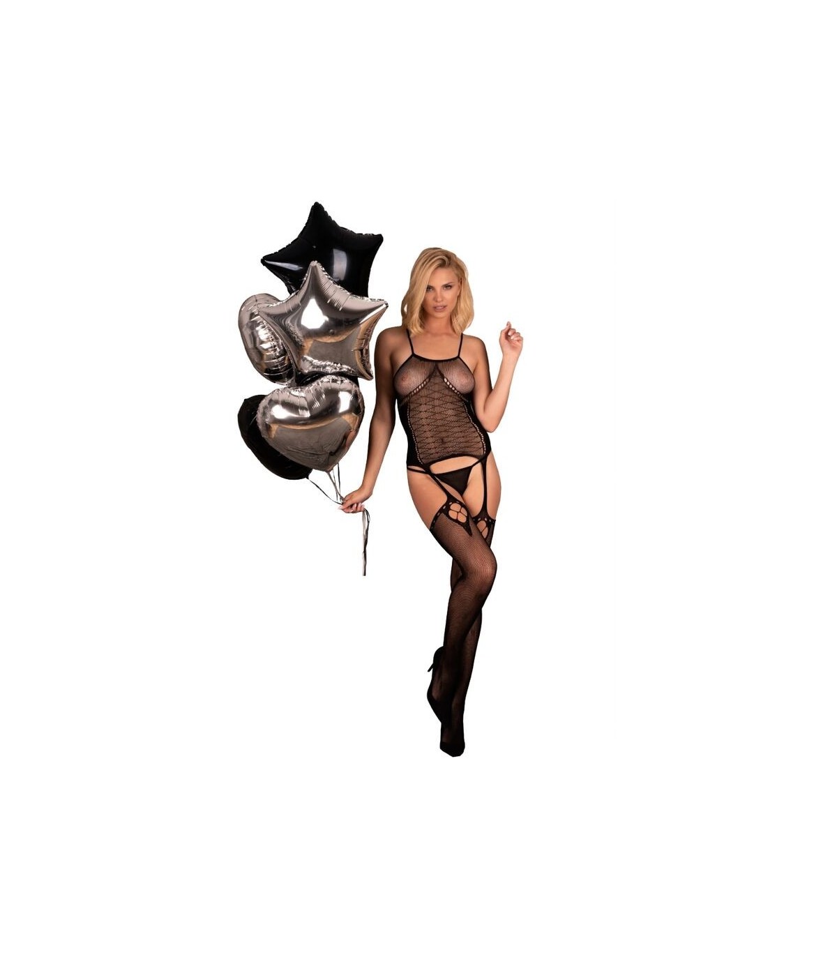 Sexy y cautivador Bodystocking Amrin Black en color negro, que como un imán atrae la mirada masculina. Seductora, apasionada y picante. El conjunto está hecho de encaje hermoso y delicado, que se adaptará perfectamente a las mujeres de tallas más pequeñas y más grandes. Funcionará bien durante los juegos en la cama para dos. Y durante una cita al aire libre, cuando la ropa interior incorporada puede convertirse en un obstáculo para los juegos eróticos conjuntos.