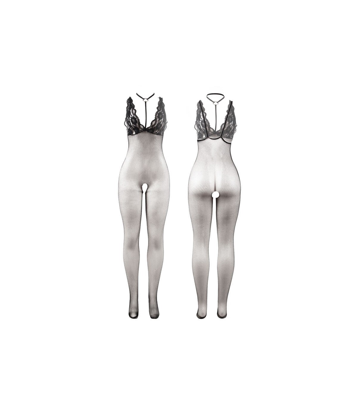 - Estilo: Bodystocking transparente de rejilla con entrepierna abierta.