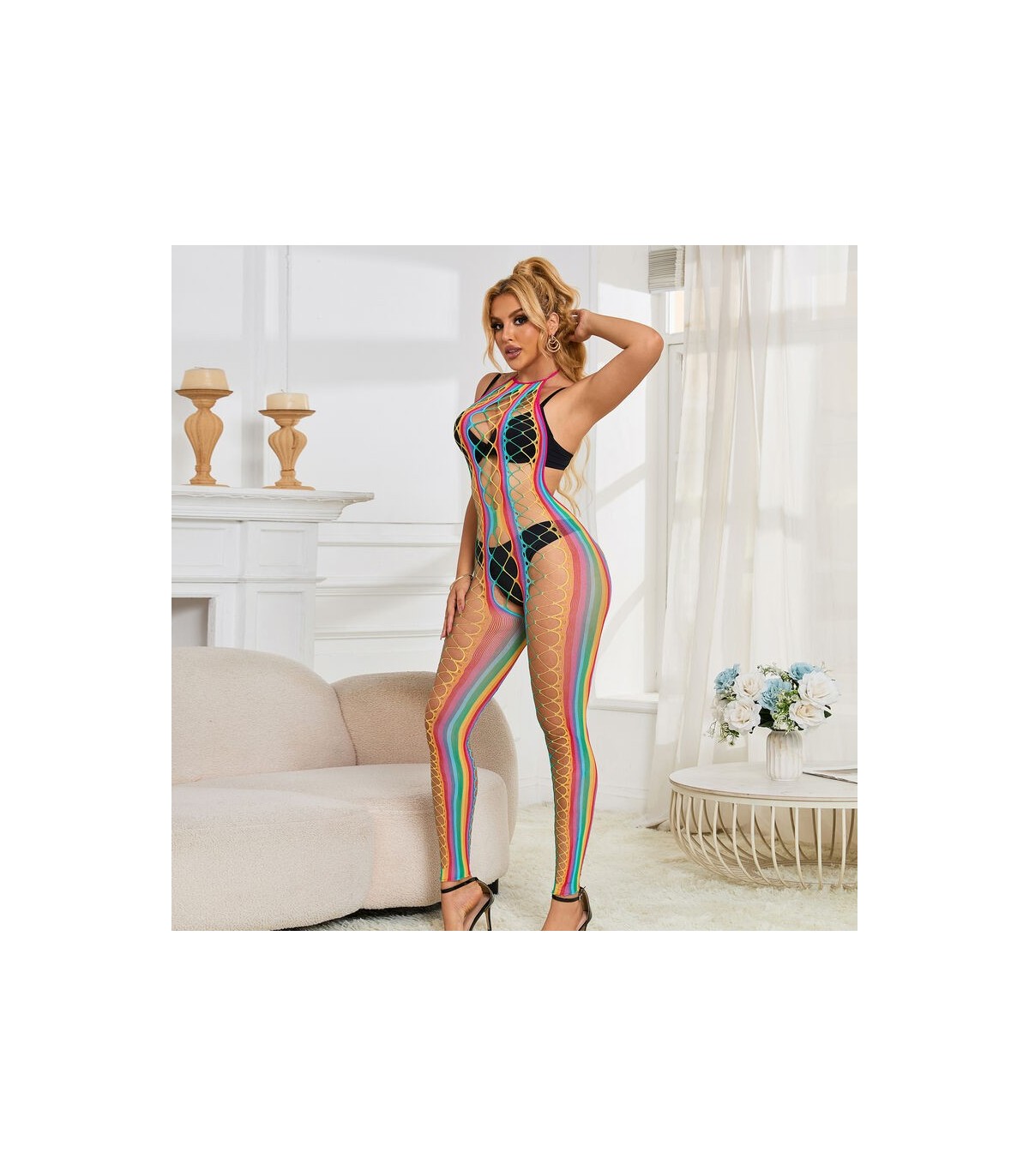 - Diseño: Malla con patrón arcoíris.