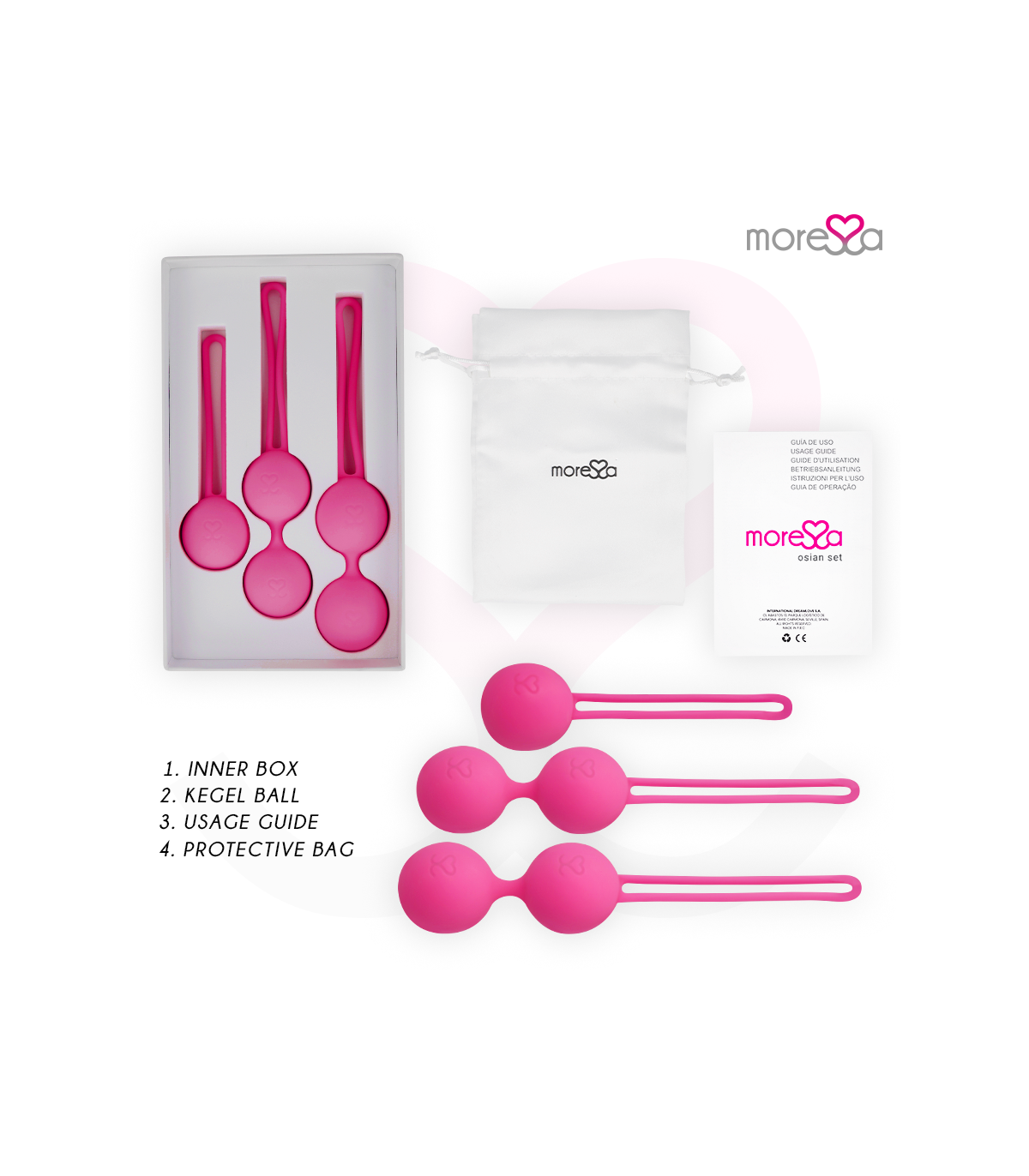 Las bolas chinas Moressa OSIAN están cubiertas de 100% silicona de alta calidad. Tienen un diseño elegante en tres colores así como un incomparable tacto de terciopelo suave y muy confortable.
