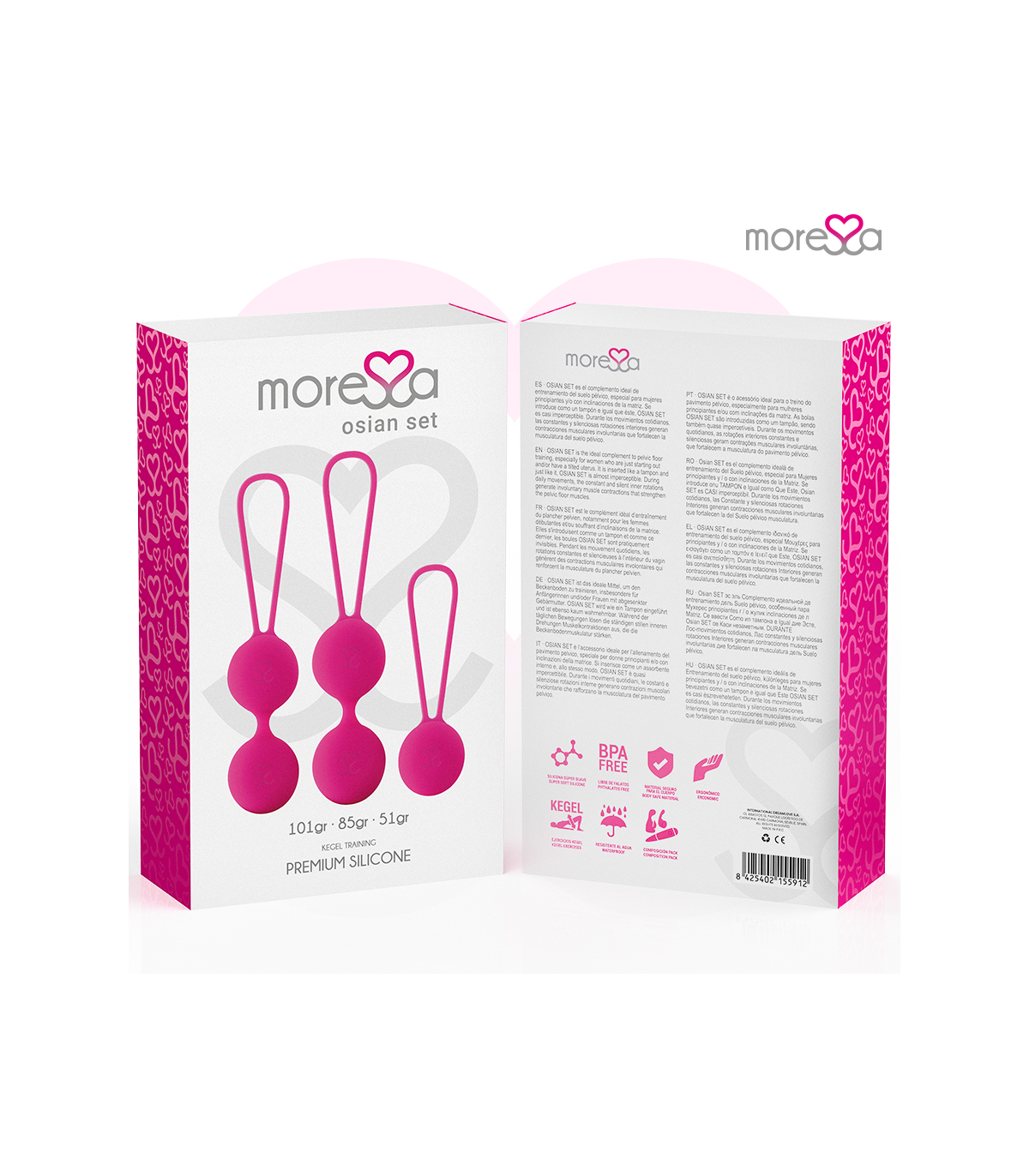 OSIAN SET ayuda a tonificar los músculos del suelo pélvico responsables de placer sexual, tienen un peso perfectamente dosificado que garantizan una sensacional sesión de entrenamiento del suelo pélvico, para atenuar la incontinencia, intensificar el orgasmo y en consecuencia mejorar la salud sexual.