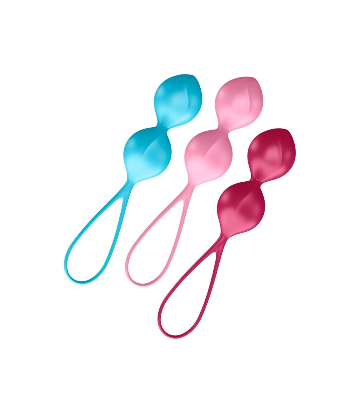 Satisfyer Balls Training set 2, es un set de 3 bolas con diferentes pesos que ayuda a tonificar los músculos del suelo pélvico responsables de placer sexual, mientras que mantiene las paredes de la vagina elástica y sensible a la estimulación y el placer. Conjunto de bolas de Satisfyer están perfectamente diseñadas para un uso personalizado, podrás llevar las bolas de silicona liquida en cualquier lugar de una forma muy comoda.