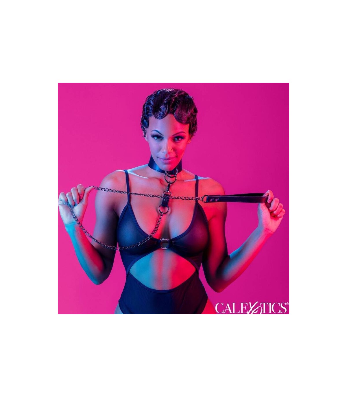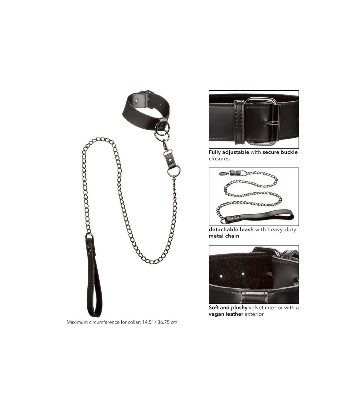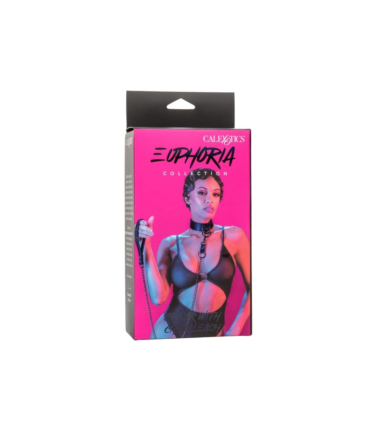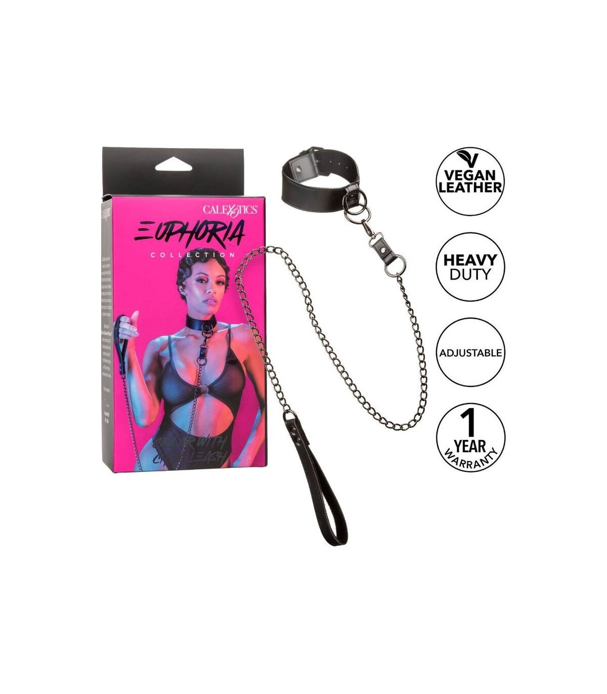 Indulge en el atractivo del collar con correa de cadena de la colección Euphoria, un accesorio resistente pero elegante para tus aventuras BDSM. Con un cierre de hebilla seguro y una correa de cadena de metal resistente, ofrece control completo sobre tu pareja sumisa. Fabricado para durabilidad y comodidad, su interior de terciopelo suave y su exterior de cuero vegano elegante crean una experiencia sensorial cautivadora. Con broches universales y anillos en O giratorios, permite un posicionamiento versátil. Mejorado con detalles metálicos que no se empañan, este collar irradia elegancia. Ríndete al juego de poder de la colección Euphoria y explora placer y control ilimitados.