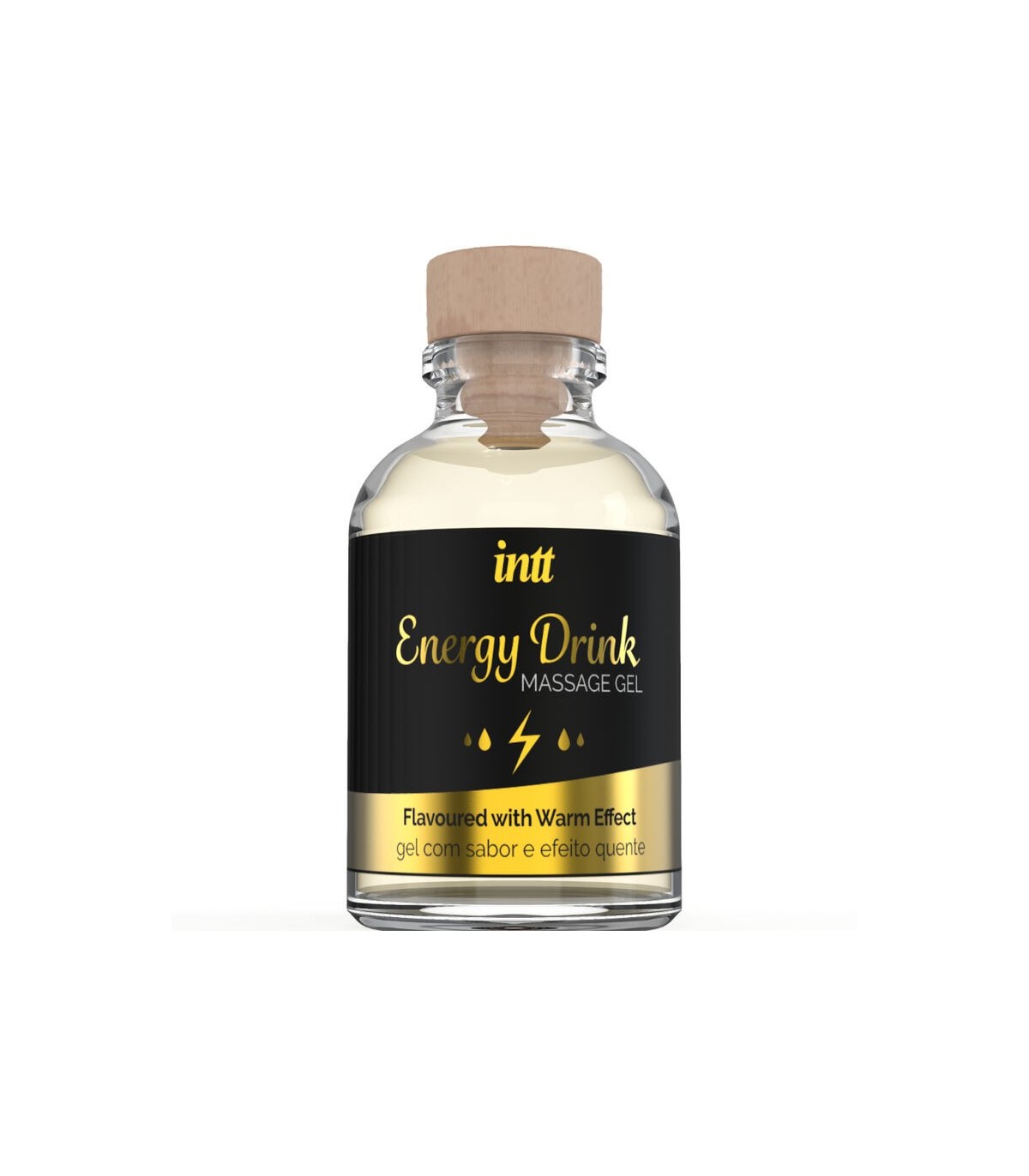 Massage Gel Energy Drink de INTT es un gel de masaje con aroma y sabor a vibrante bebida energética que añade un agradable y cálido efecto calor.