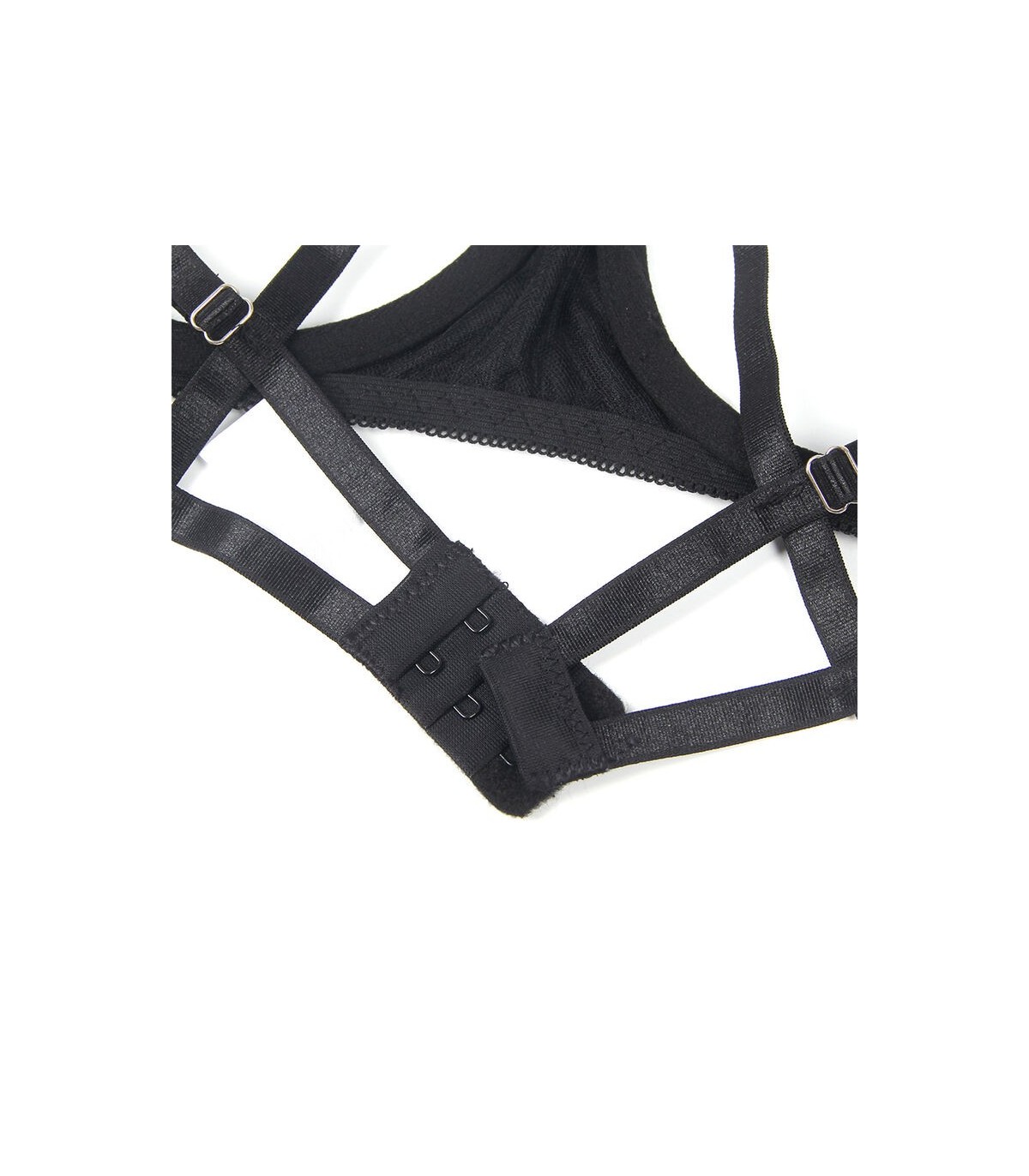 El tanga, minimalista y atrevido, complementa el diseño del sujetador, mientras que el liguero añade un toque irresistible de sofisticación. Este detalle adicional permite combinarlo con medias para completar un look audaz y provocador, ideal para momentos de intimidad o para sorprender con un estilo impecable.