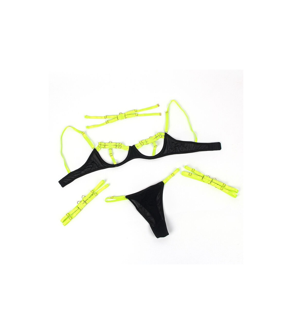 SUBBLIME - 955281 BRA SET WITH NECKLACE AND LEG DETAILS FLUORESCENT GREEN L/XL