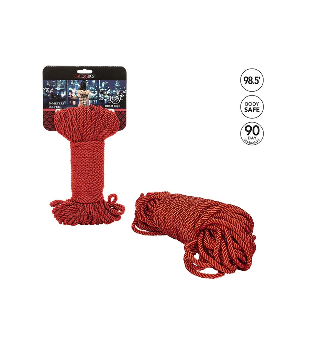 Dale rienda suelta a tus fantasías BDSM y da rienda suelta a tu creatividad con los 30 metros de cuerda BDSM Scandal®. Nuestra galardonada colección Scandal® ha creado la cuerda suave y sedosa, ideal para shibari, de tus fantasías más salvajes, para que te sumerjas en un juego de bondage infinitamente creativo. Entrégate a un placer elevado y acrecentado con cada vuelta y nudo de esta cuerda sedosa y fina. Envuelve firmemente las muñecas, ata suavemente los tobillos o crea una atadura shibari única en tu pareja para una experiencia única y sensacional. Esta cuerda sedosa es ideal para parejas que buscan experimentar con nudos y sujeción. Lleva tus fantasías al siguiente nivel y llévalas al límite con la infinitamente creativa Cuerda BDSM.