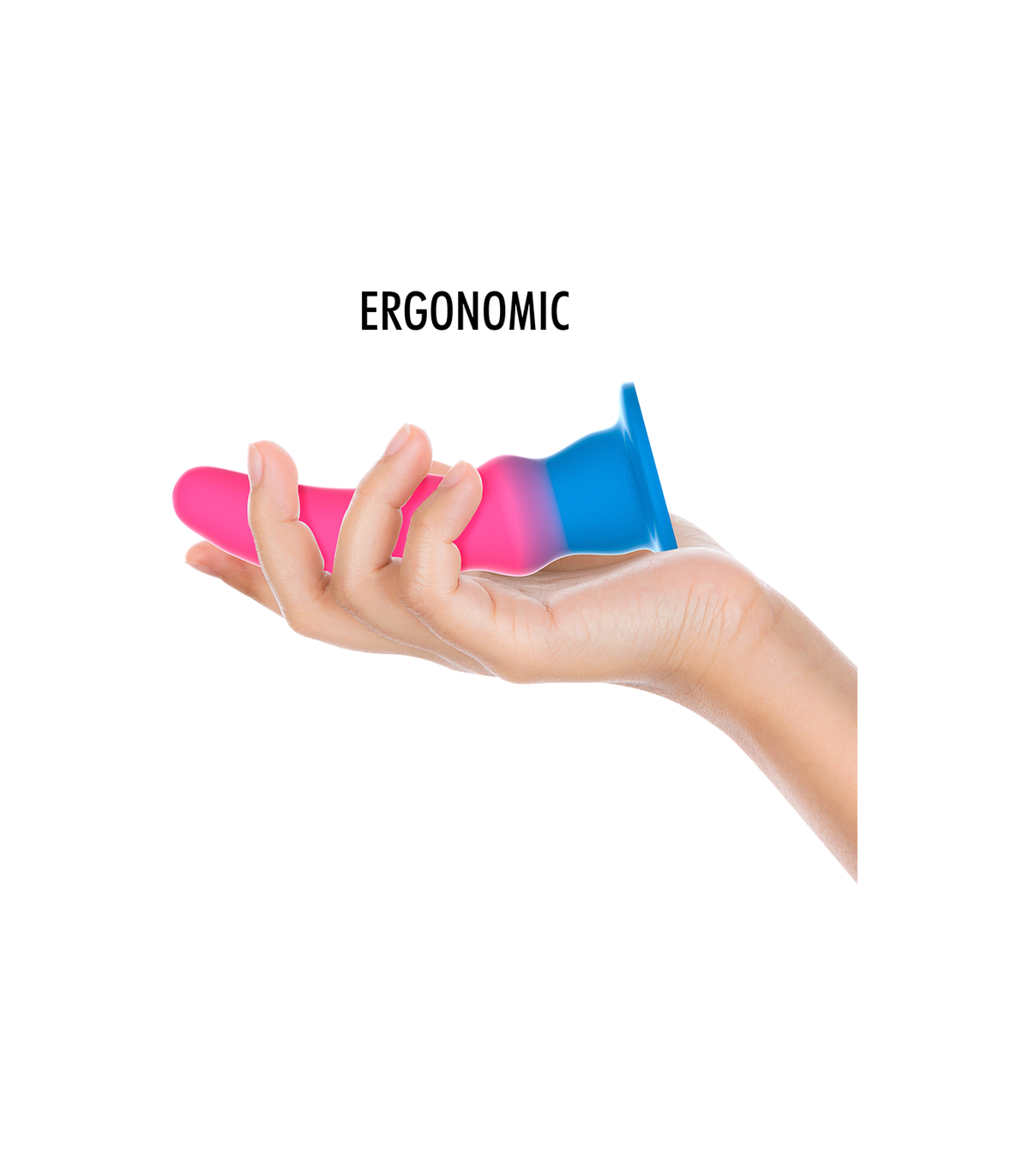 Kuno Utopia es el juguete indicado para usar en prácticas anales. Su diseño con dos marcadas protuberancias ayuda reforzar el estímulo anal, convirtiendose en el mejor compañero para los amantes del “backdoor”. Todo esto se ve reforzado por una rigidez superior a los demás dildos de la marca, ya que gracias a esto, facilitará más aún su uso en solitario, pudiendo colocarlo sobre cualquier superficie plana que se desee. Este juguete hará brillar cualquier zona donde sea colocado con sus dos llamativos colores neón.