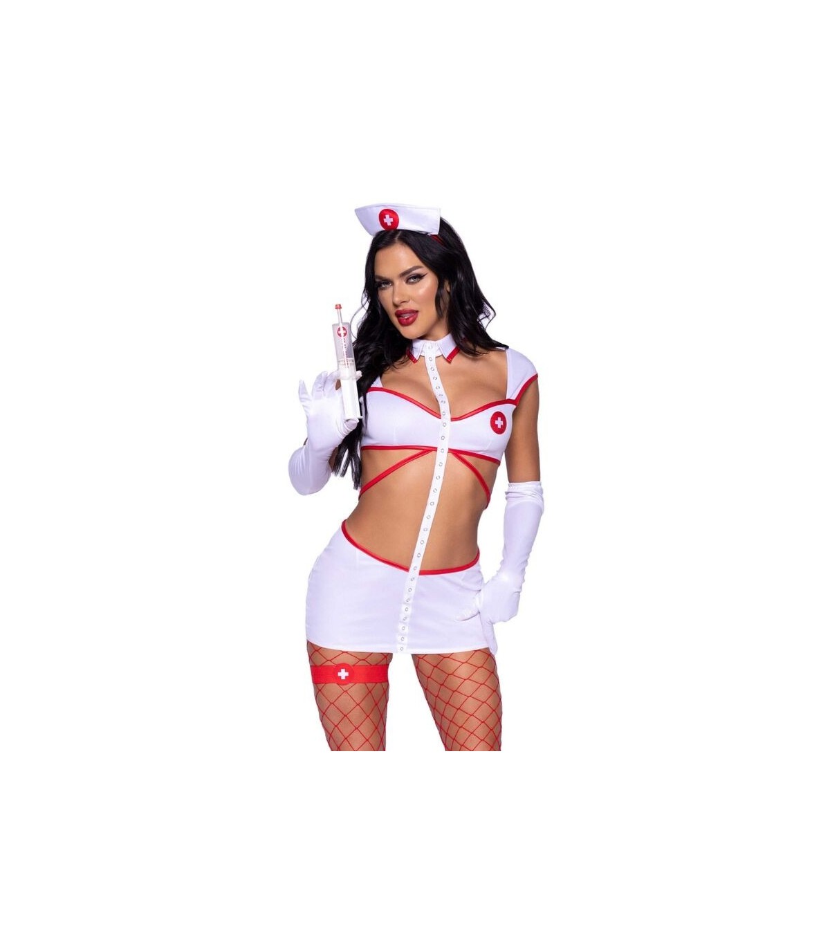 - Accesorios Incluidos: Completa el conjunto con guantes, un tocado de enfermera y una liga que añaden un toque auténtico y provocativo al look.